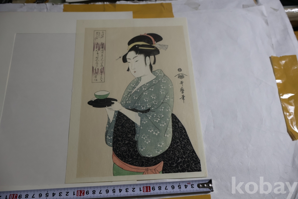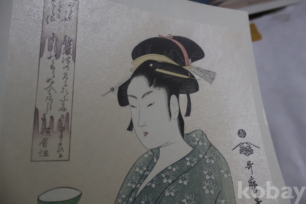게이샤 임니다 섬세 정교 아름다운 소화기의 명화 임니다 고급 목판화 일본 목판화의 명물 임니다 은 마이카 처리 된 명작 임니다