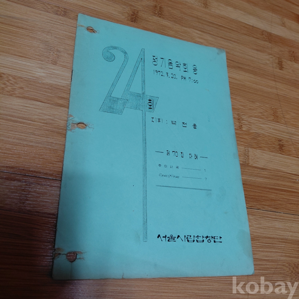 서울시립합창단 1972년자료책자 한점 정기음악회 악보집 올려드립니다