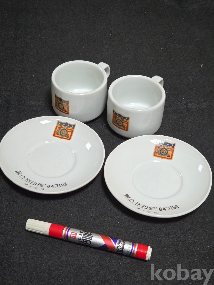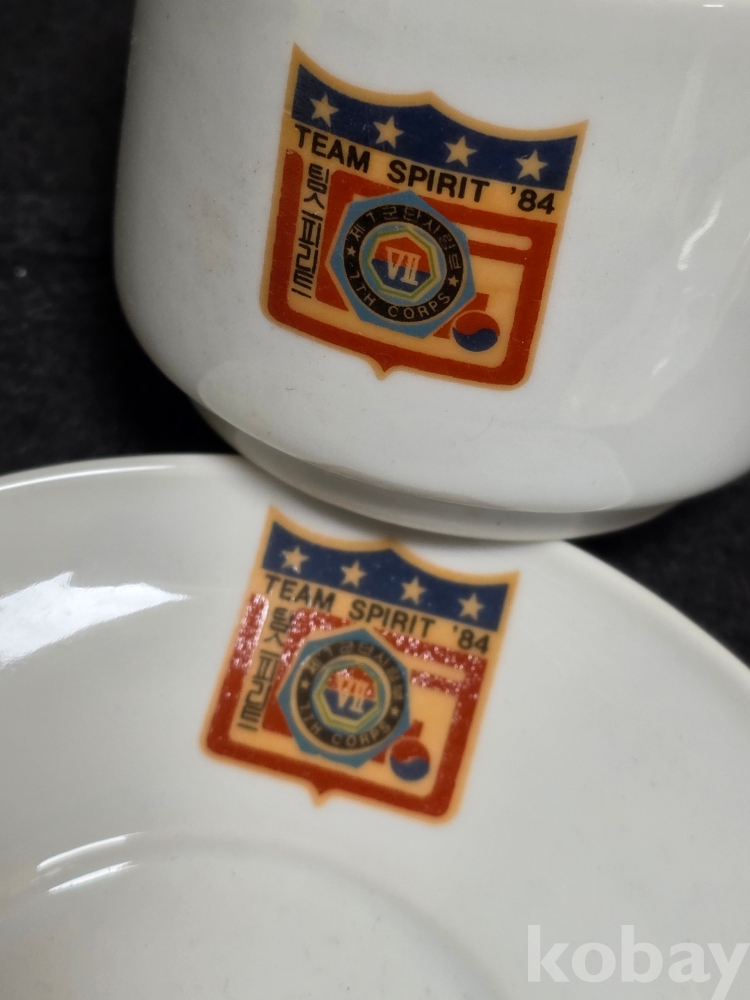 (((군자료))) 팀스프리트 '84 기념 커플 도자기커피잔과 잔받침 (제7군단)