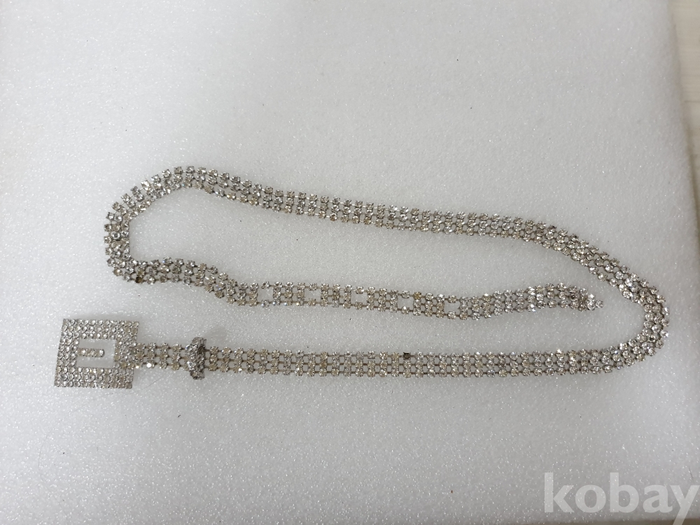 {천원경매} Y-3-1092 큐빅 체인 벨트 (92cm, 큐빅 빠진곳 있음)