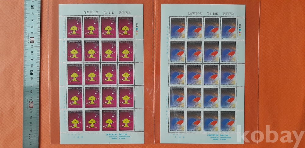 1990년 대전엑스포 제1집 440원 고액권 포함 20매 전지 2종 입니다.