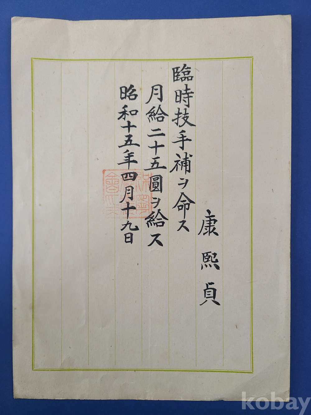 ▶1940년4월19일 農會 臨時技手補 발령장