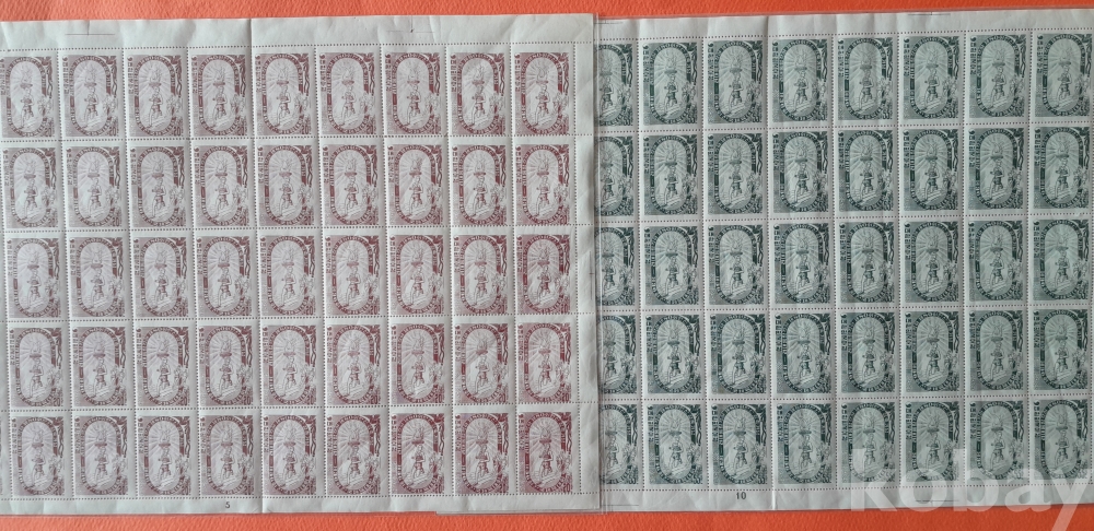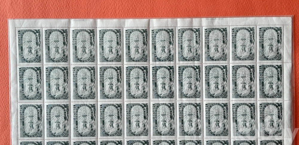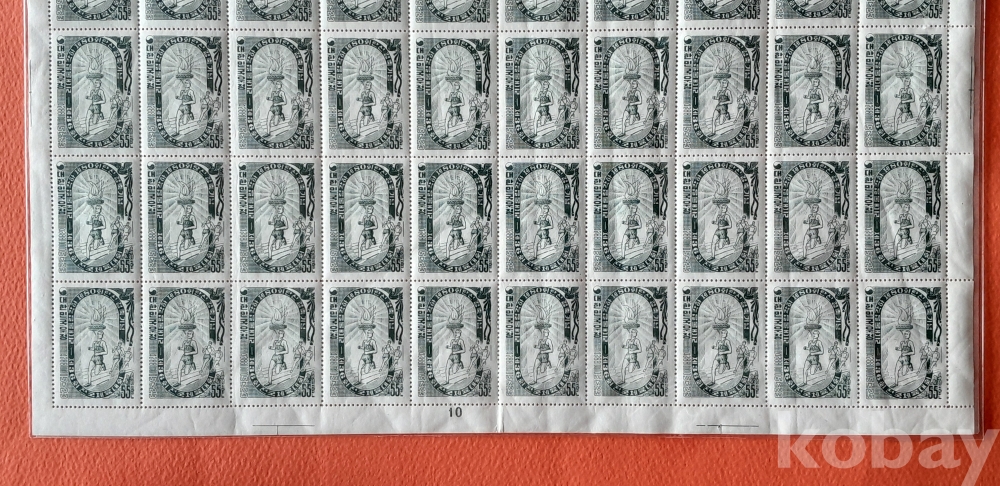 1955년 10월 23일 발행 제36회 전국체전 50매 전지 2종 세트입니다.