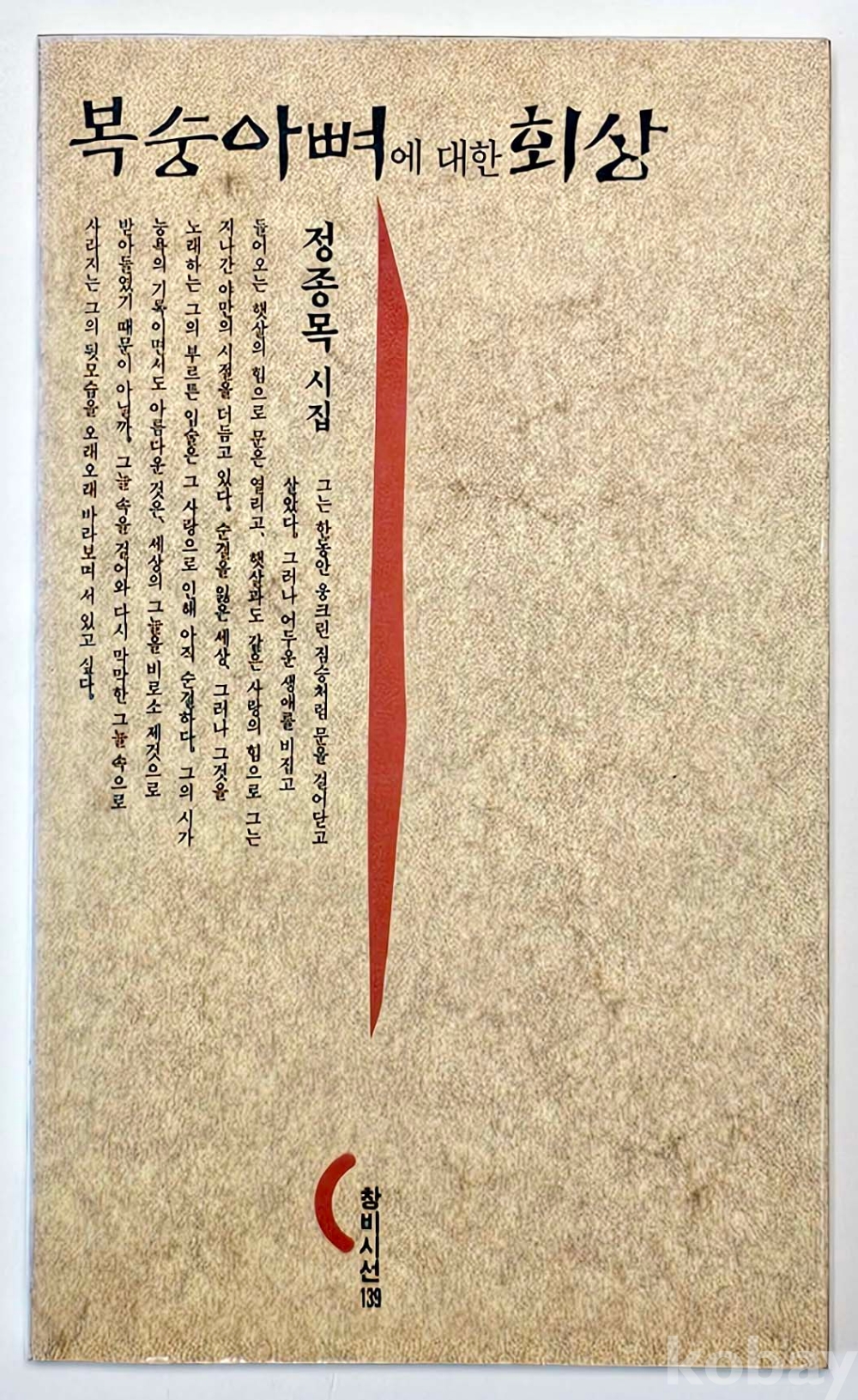 물 품 명 | 복숭아뼈에 대한 회상 / 정종목 詩集 / 1995년 초판 / 창작과비평사 |