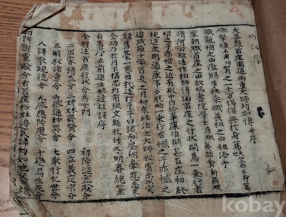 글의 마지막 부분인 大華嚴歸法寺主圓通首座均如傳은 귀법사 주지이자 원통수좌였던 균여의 전기가 끝났음을 알리는 종결부.