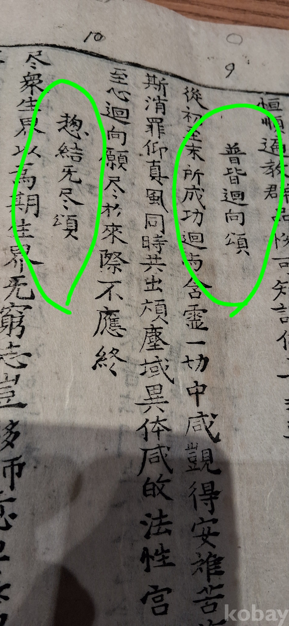 5 수희공덕송(隨喜功德頌): 남의 공덕을 함께 기뻐한다는 뜻의 다섯 번째 원력에 대한 한시.