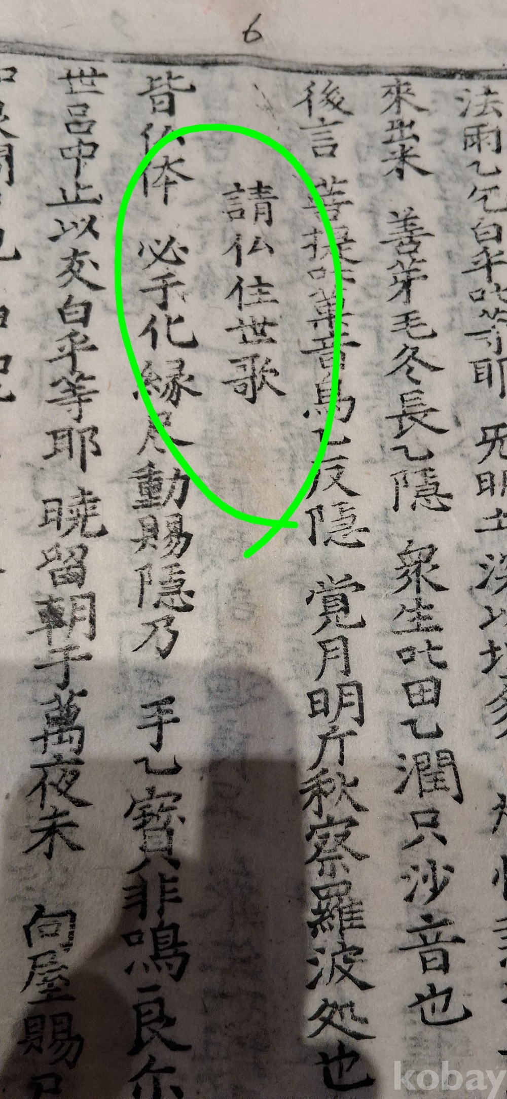 6 청불주세가(請佛住世歌): 부처님이 이 세상에 오래 머물기를 청하는 노래.