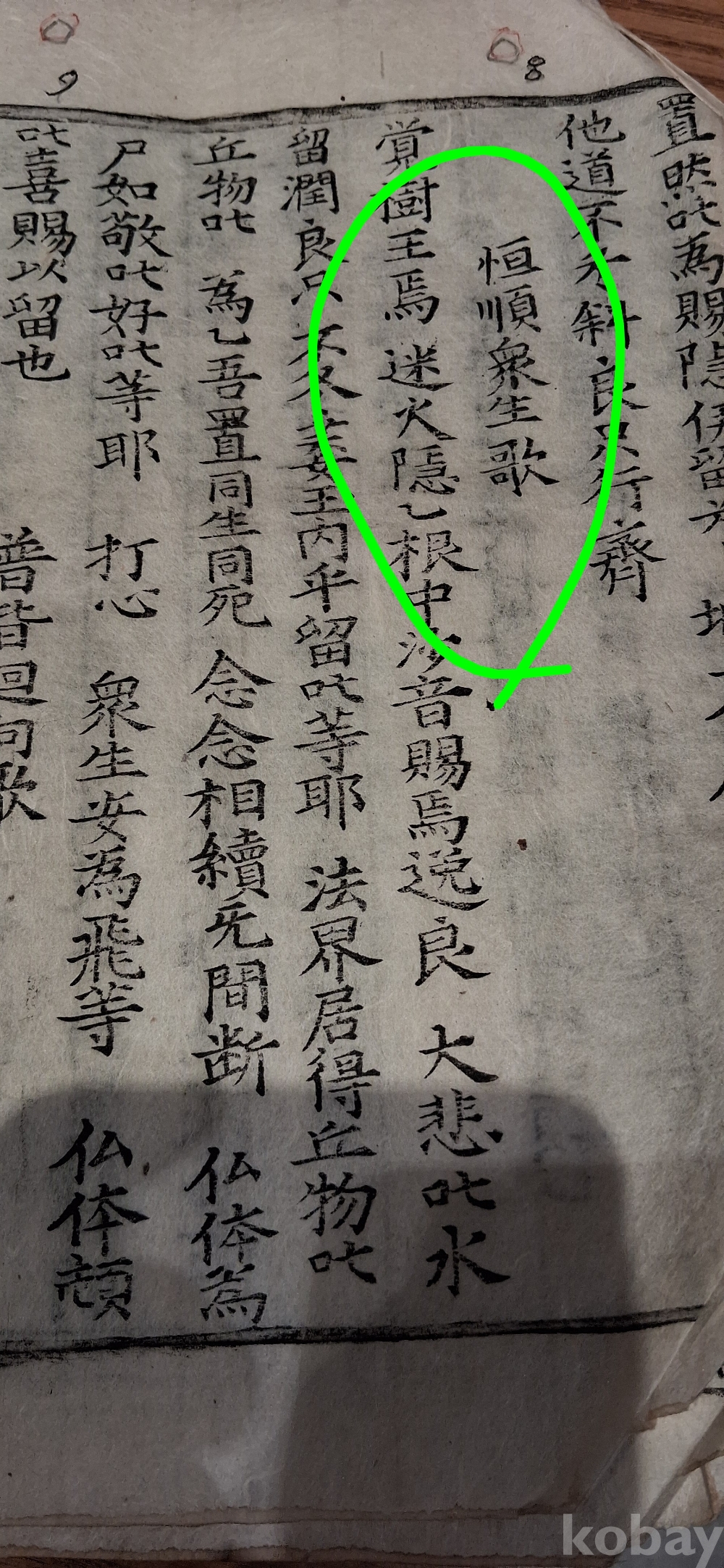 8 항순중생가(恒順衆生歌): 언제나 중생의 뜻에 따라 제도하겠다는 노래.