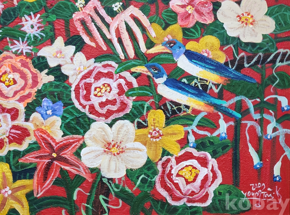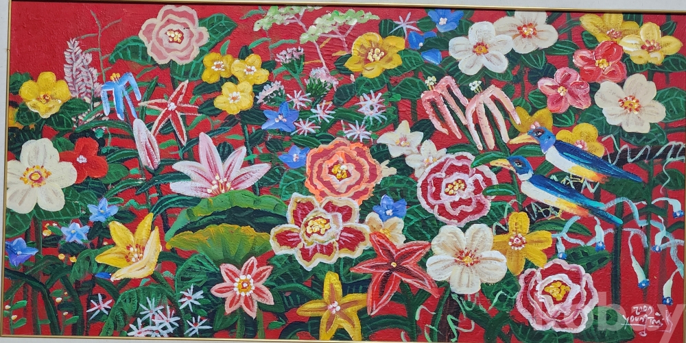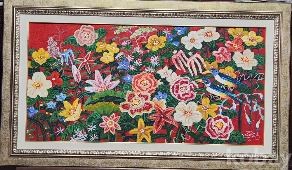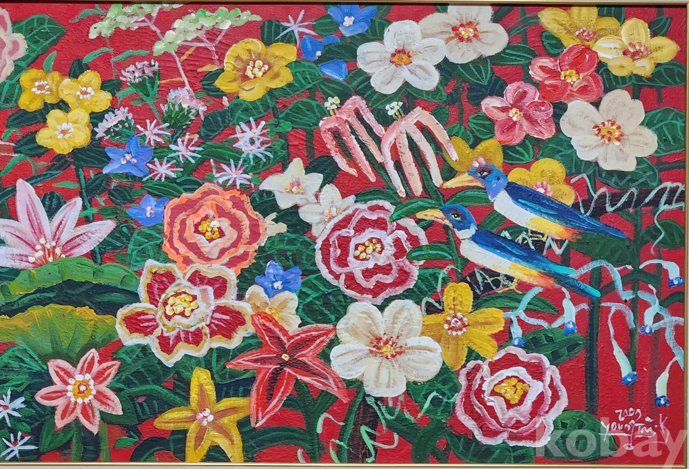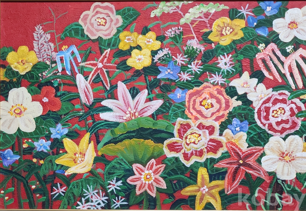 유석 김영태 화백의 꽃의향연 석채화 편형 50호 입니다