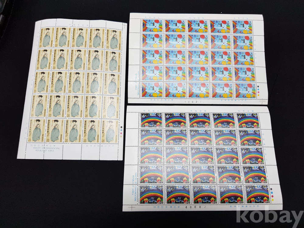 - 미사용 1970~80년대 우표취미주간 전지 3종 5매 모음