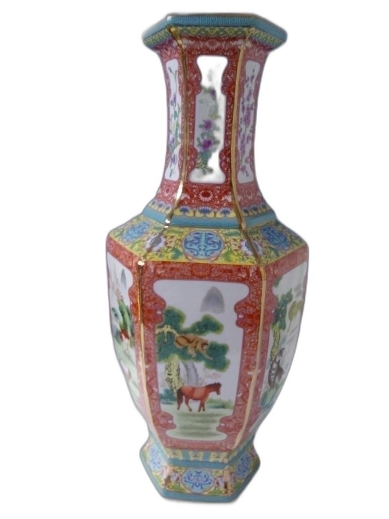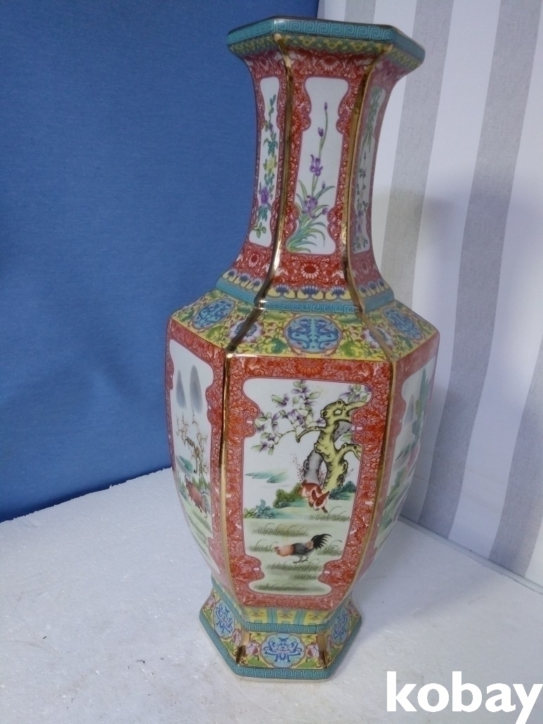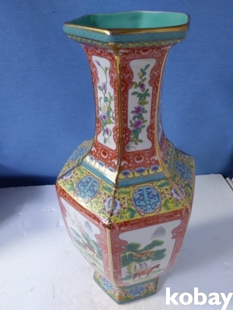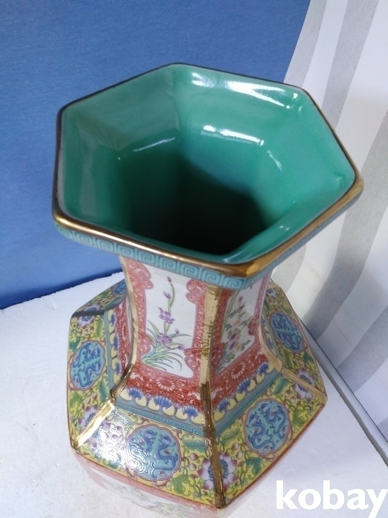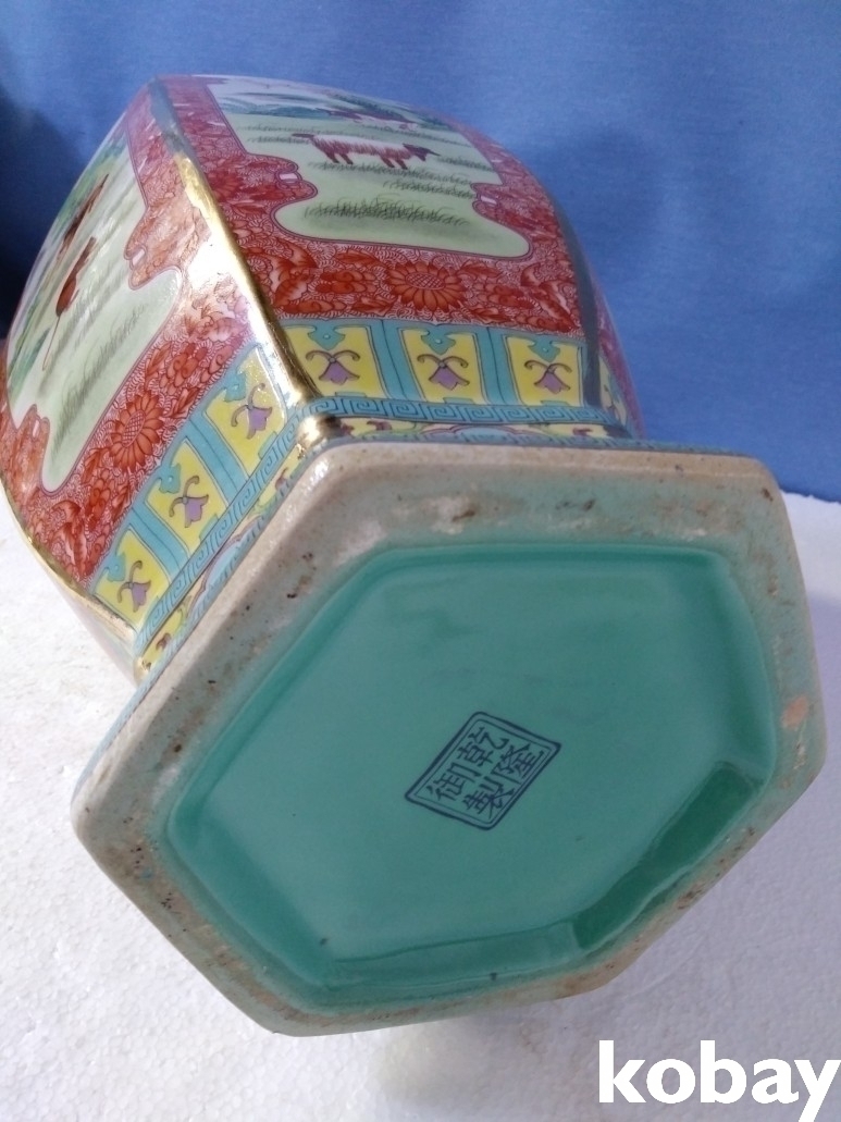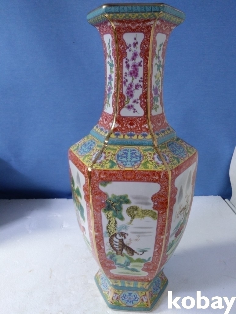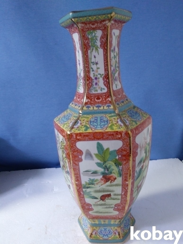 12지 동물들을 재미있게 표현한 오채 6각 대형 도자기 입니다.