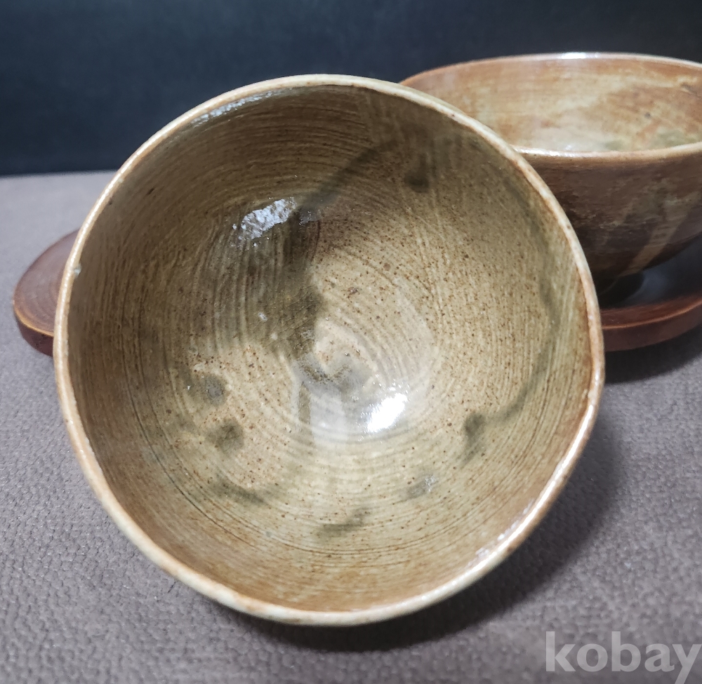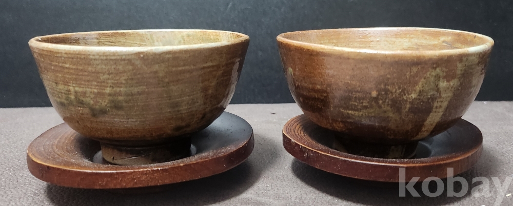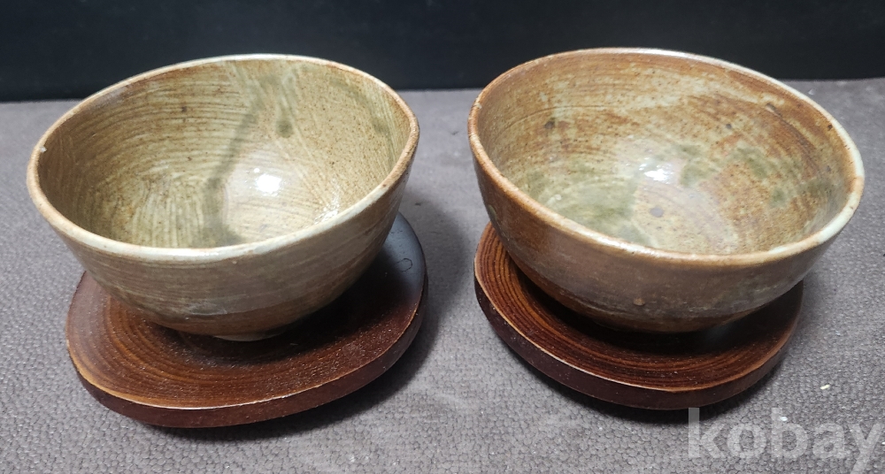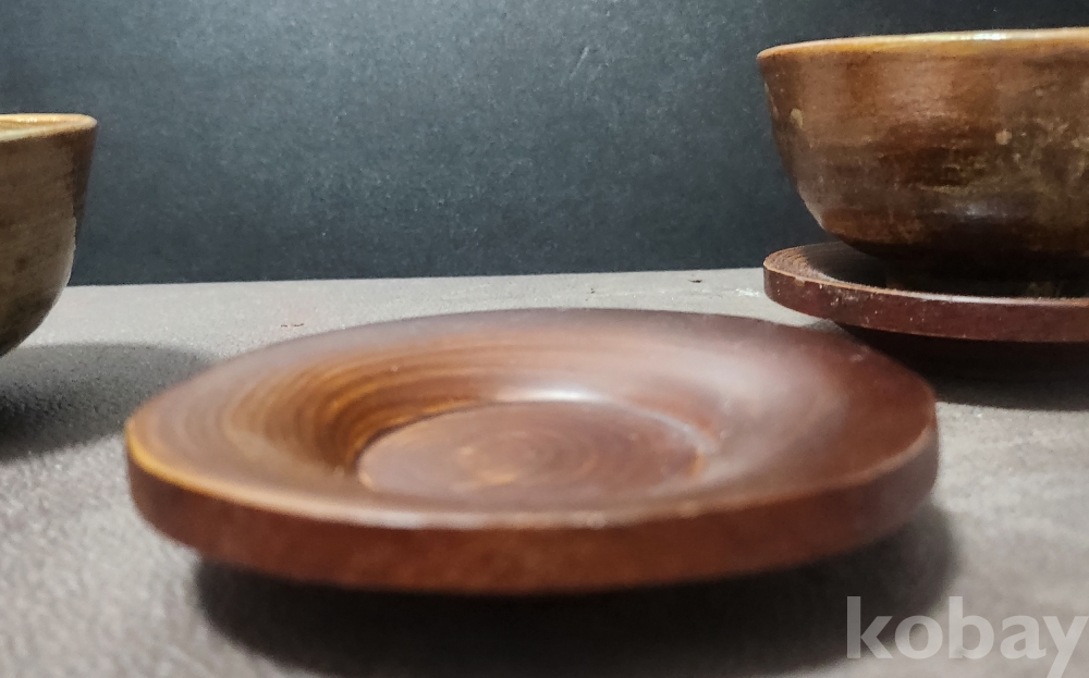 <문경 聞慶 > 도예가 찻잔 세트 作品 < 원목 받침대 완비 作 >