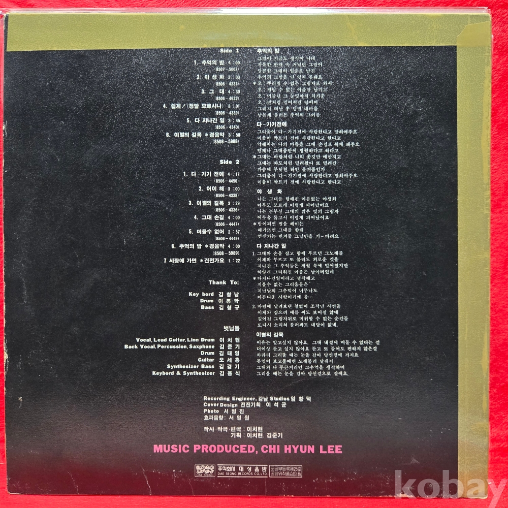 | 자켓상태 | EX : 약간의 마모, 모서리 찢김 존재 | 음반상태 | EX : 재생에 영향 없는 가벼운 기스 존재 | 발매정보 | 초반 | 가사지여부 | 무 |