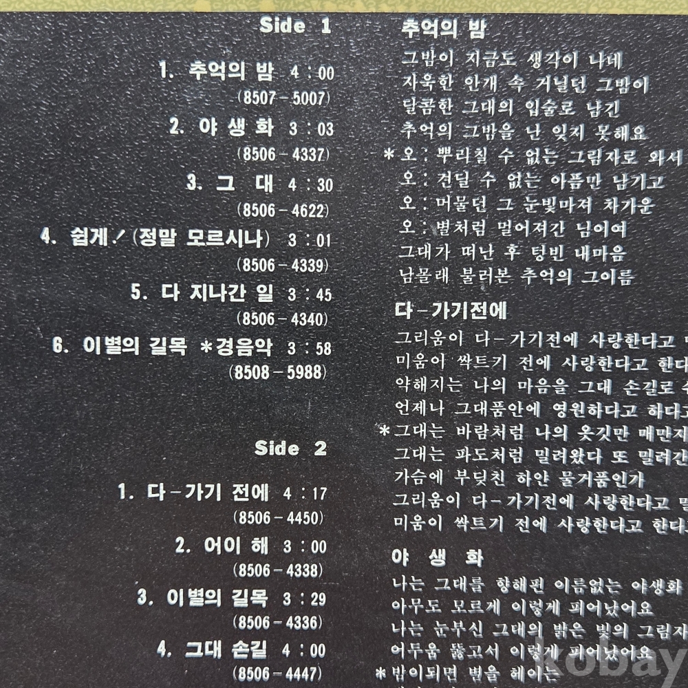 중고 LP인 관계로 취소나 반품도 불가합니다.