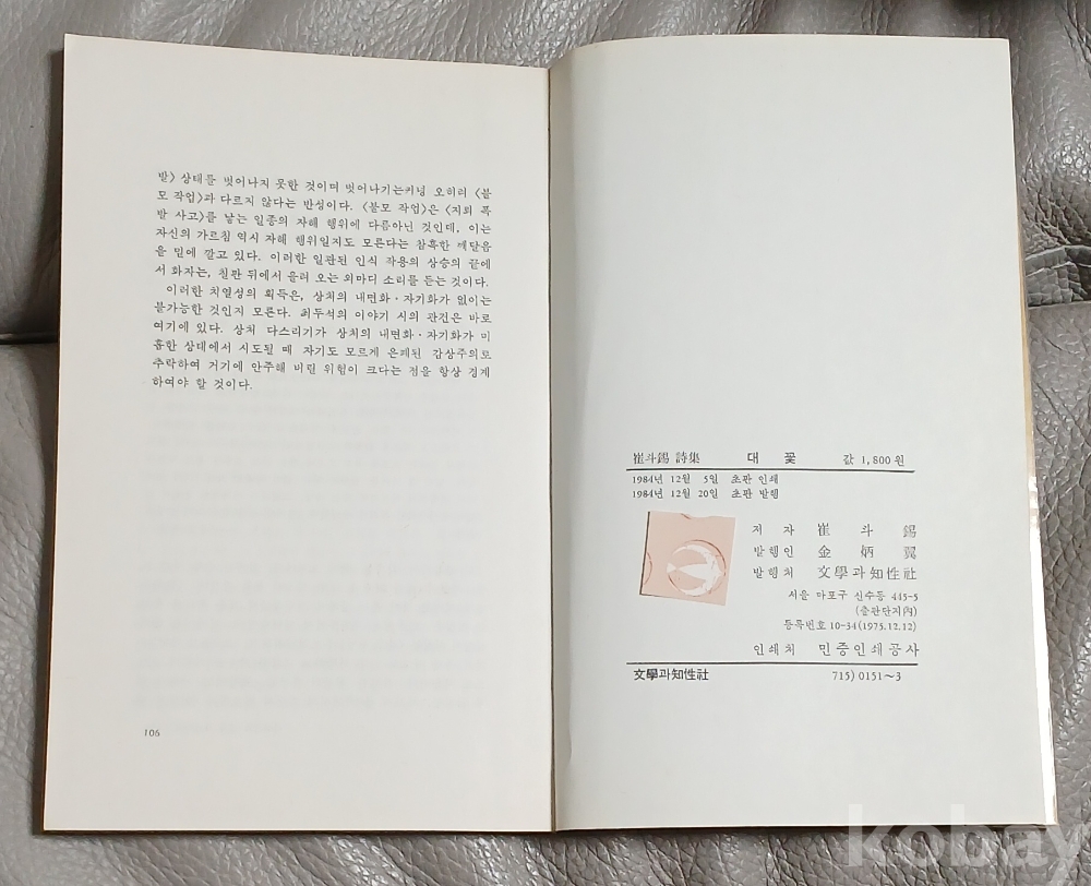 [초판본시집] 대꽃 - 최두석 1987년초판발행