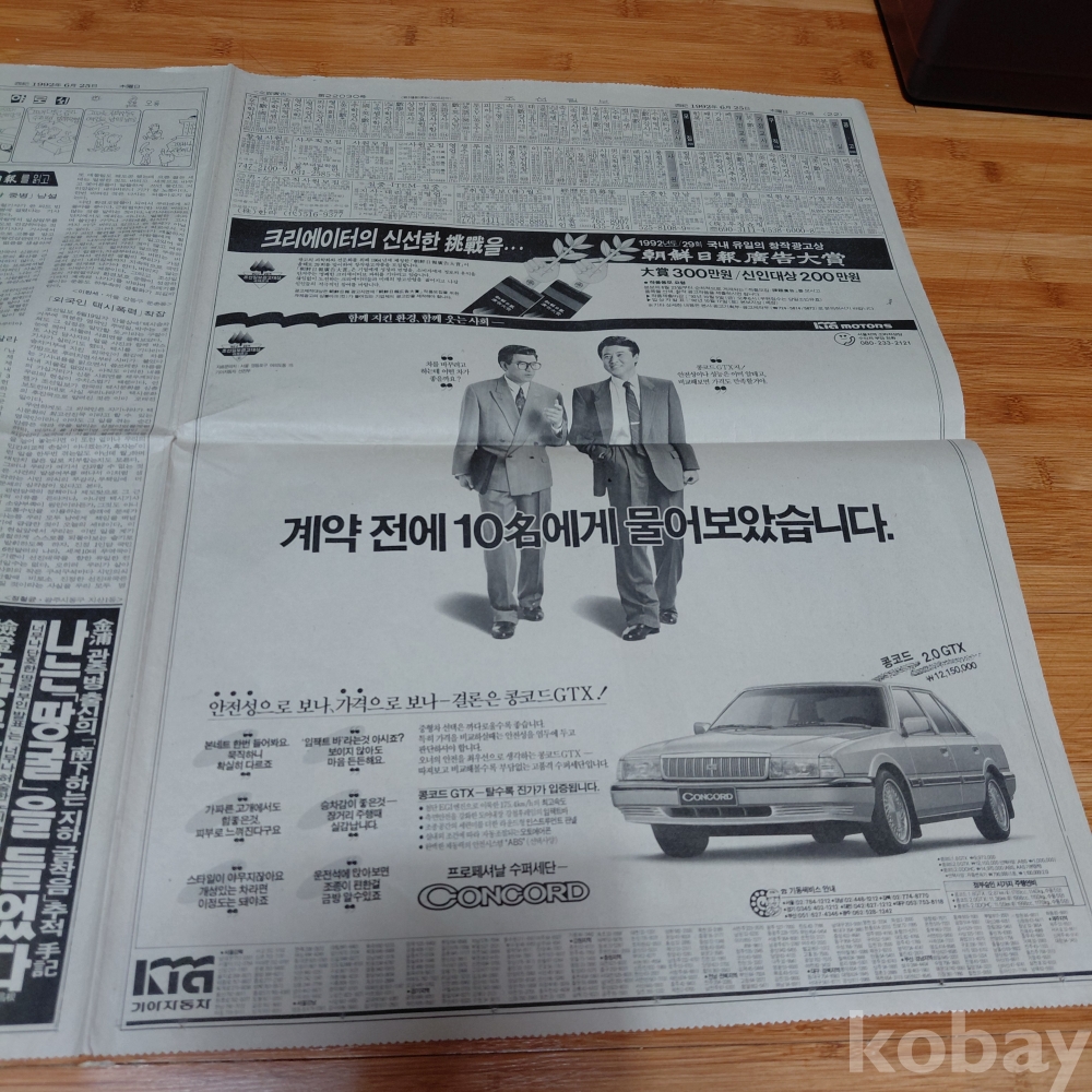 기아자동차 콩코드 승용차 광고 조선일보 92년6월25일 올려드립니다