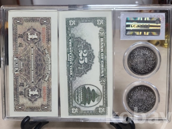 주화와 지폐가 프루프 형태로 담긴 기물입니다 감정받지 않은 소장품입니다