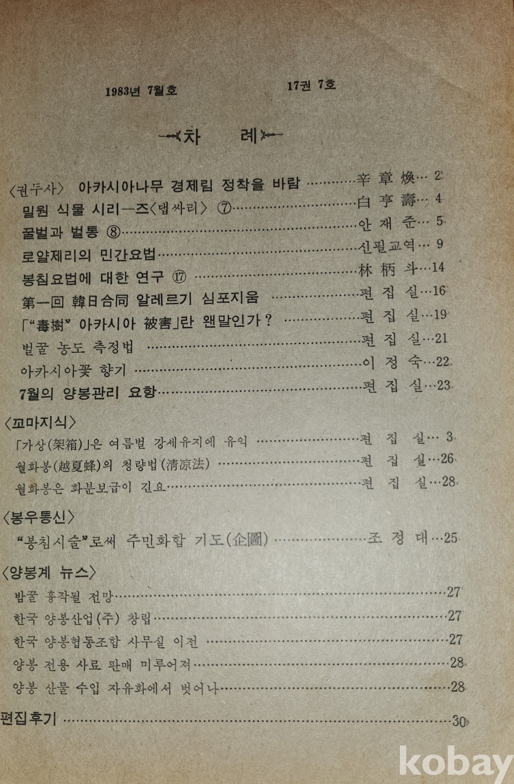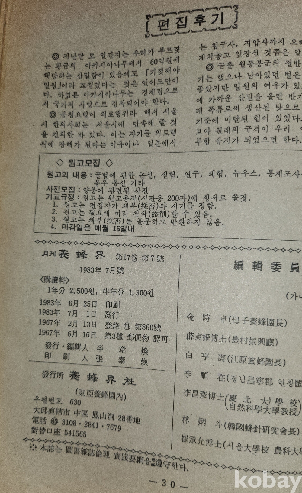 1983년에 발행된 양봉계(養蜂界) 양봉계사 발행7월호입니다,