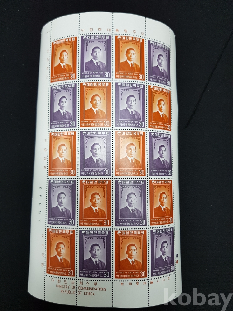 - 미사용 박정희 대통령 추모 전지 등 3종 5매 모음