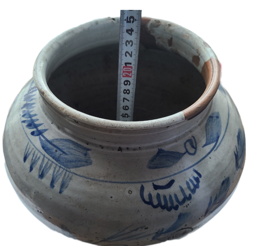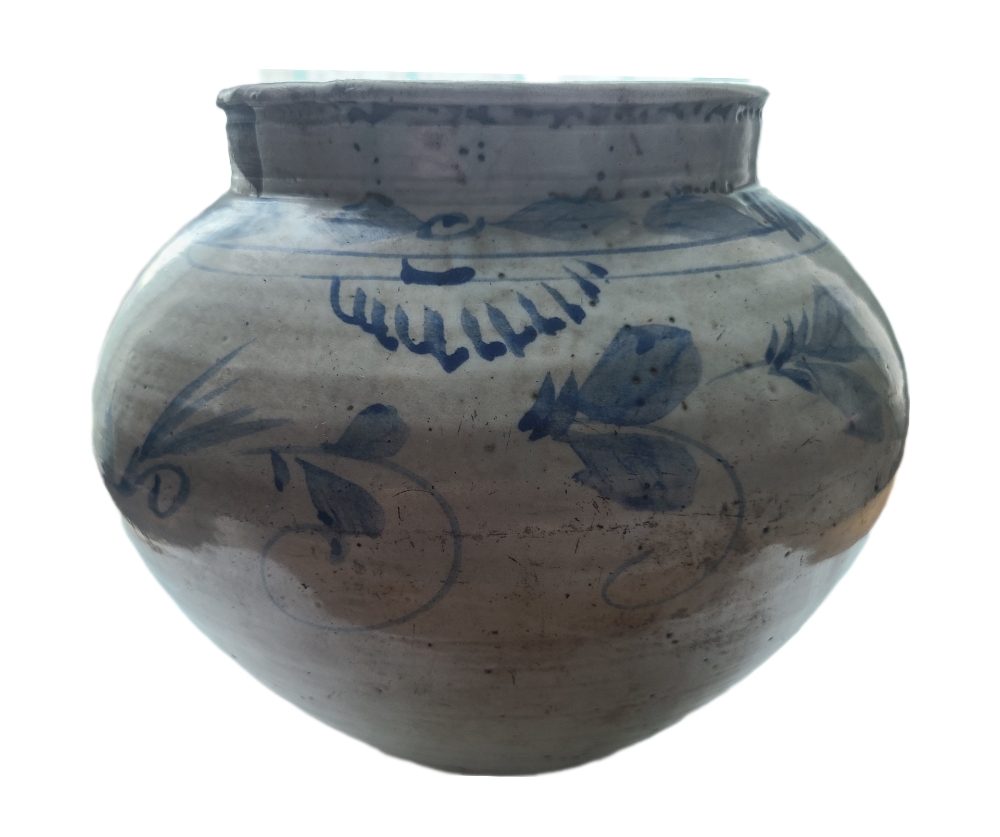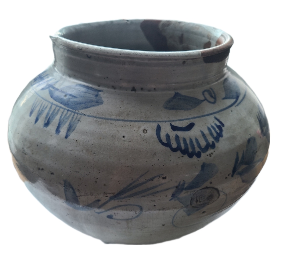 조선 후기부터 일제강점기까지 황해도 해주 지역에서 제작된 것으로 알려진 청화백자 단지입니다. 투박하면서도 정감 있는 형태와 손맛이 살아 있는 청화(靑畵) 문양이 특징이며, 주로 식수 보관, 장류 저장, 의례용 단지로 사용되었습니다.