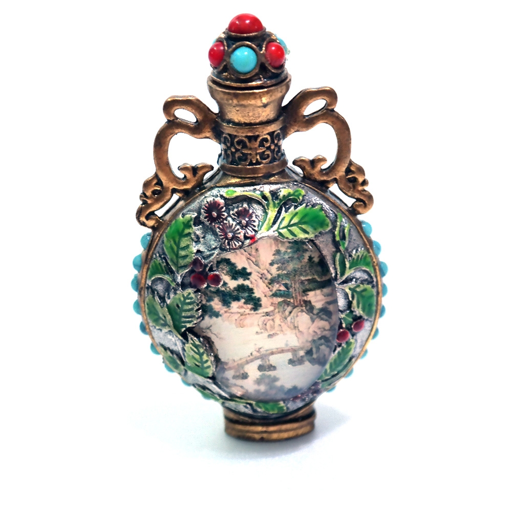 앤틱한 미니 장식품 중국 골동품 재현작 산수화 선비 합금 케이스 용기 향수통 향수병 D