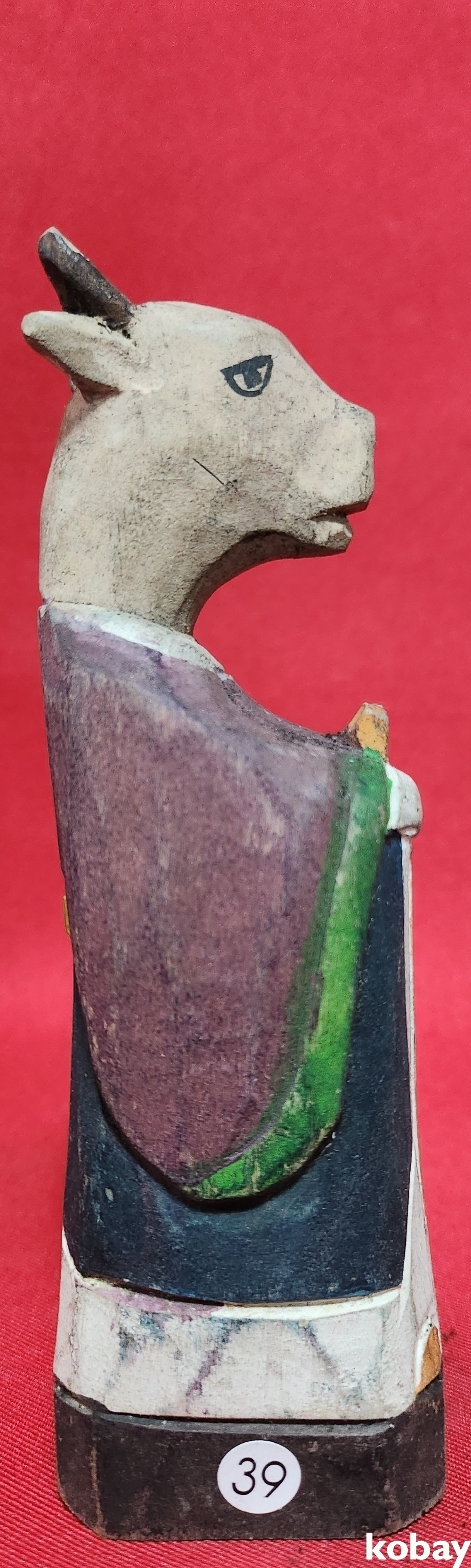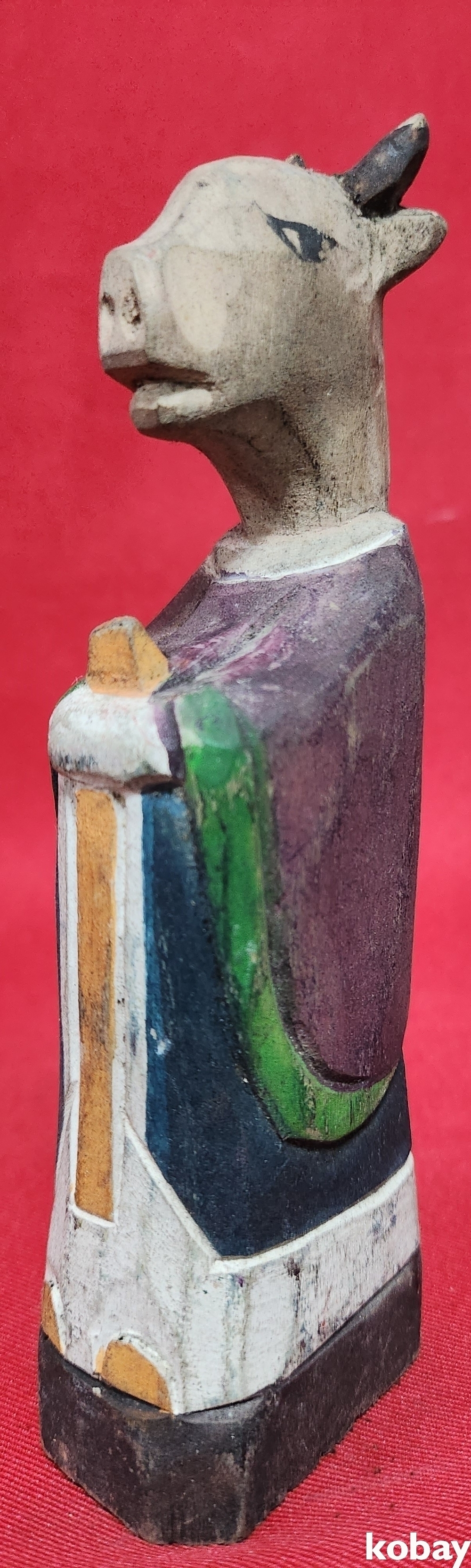 민속품 나무에 당채색으로 완성된 꼭둑입니다,