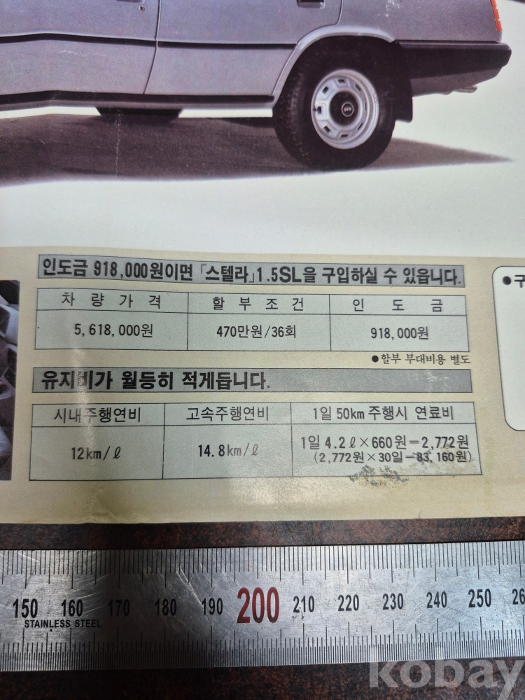 1980년대 현대 자동차 스텔라 광고지 전단지 1점