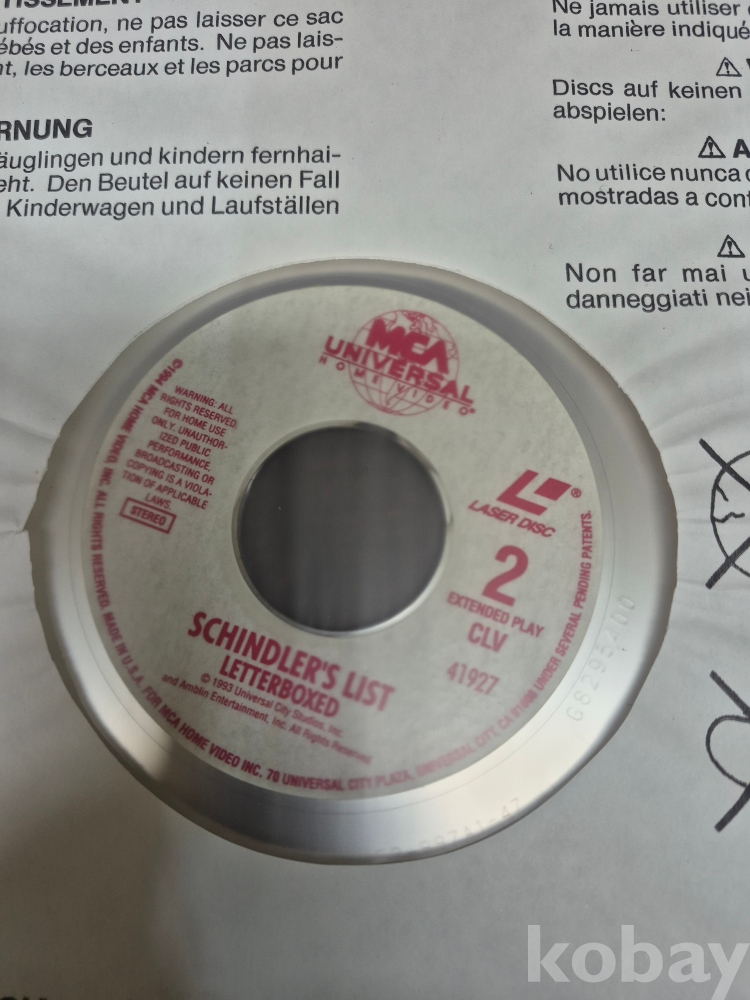 1980년대 쉰들러 리스트 레이져 디스크 31.5*31.5*1