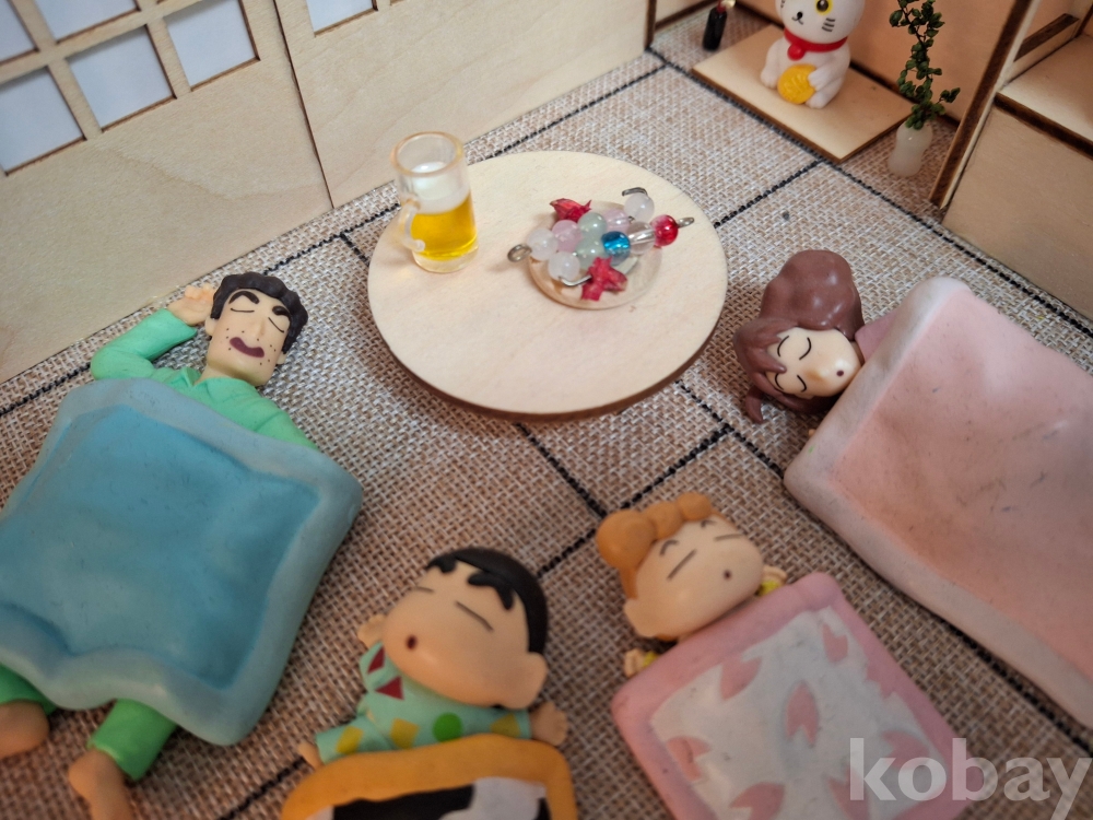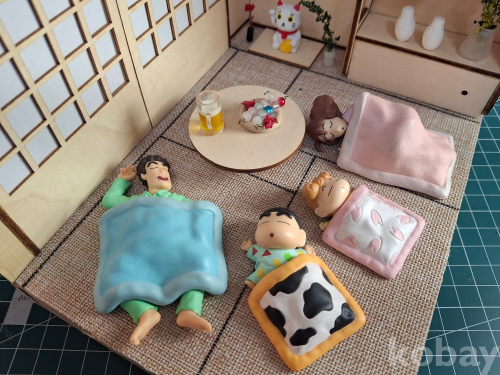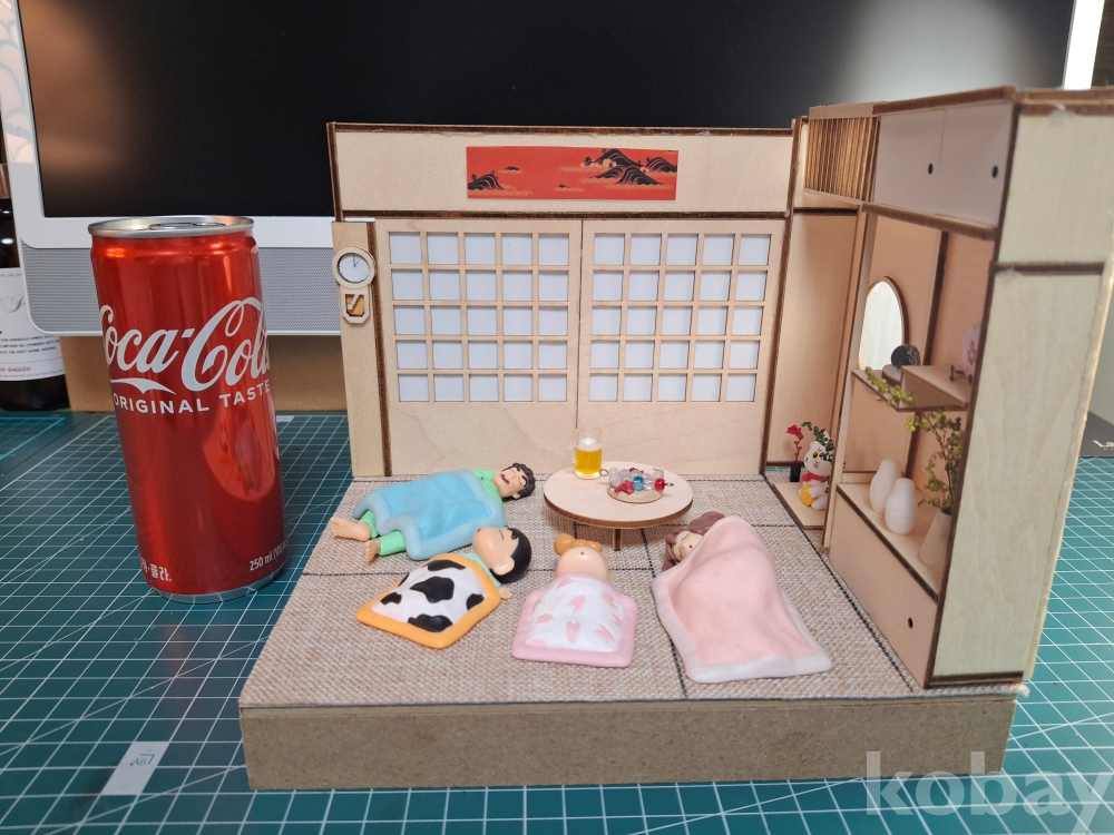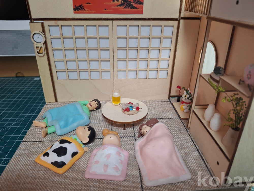 짱구네 가족이 한 방에서 예쁘게 잠든 디오라마 피규어인데