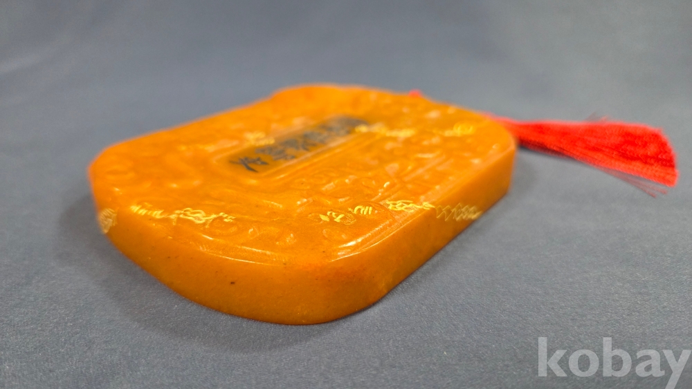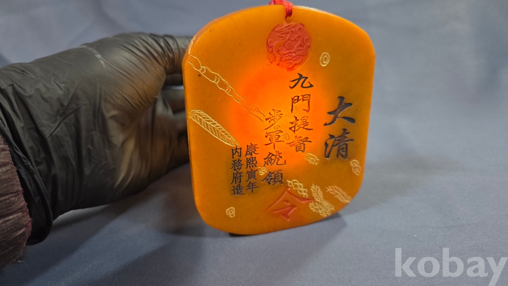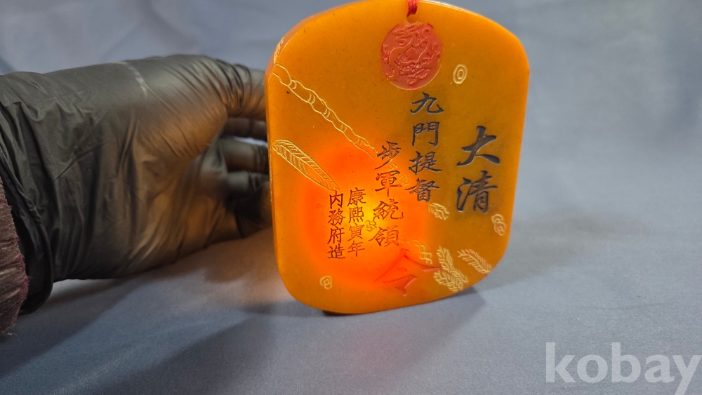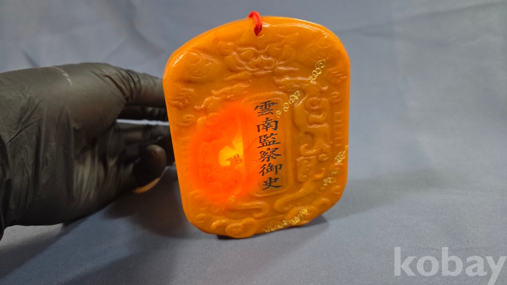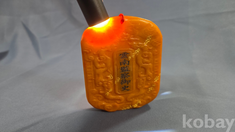 빛이 투과가 잘되는 노란색 옥 재질입니다.