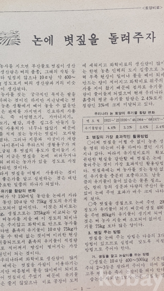 반세기 전의 우리나라 농업 기술을 돌아 볼 수 있읍니다,
