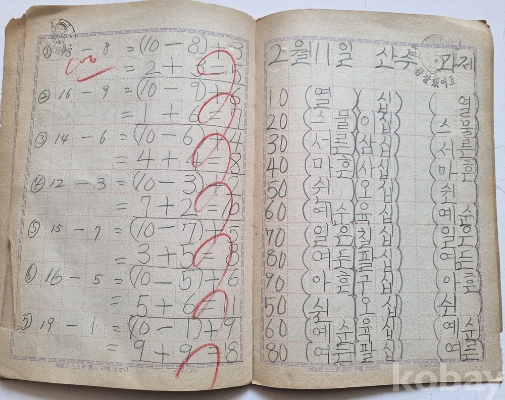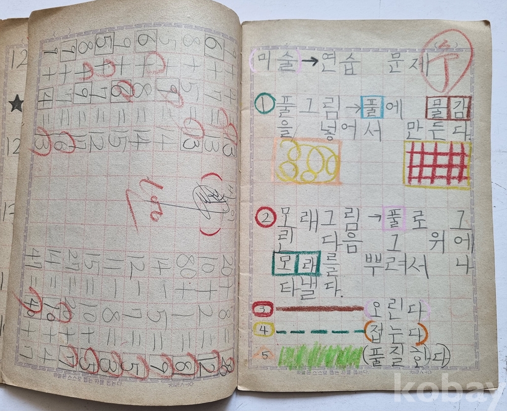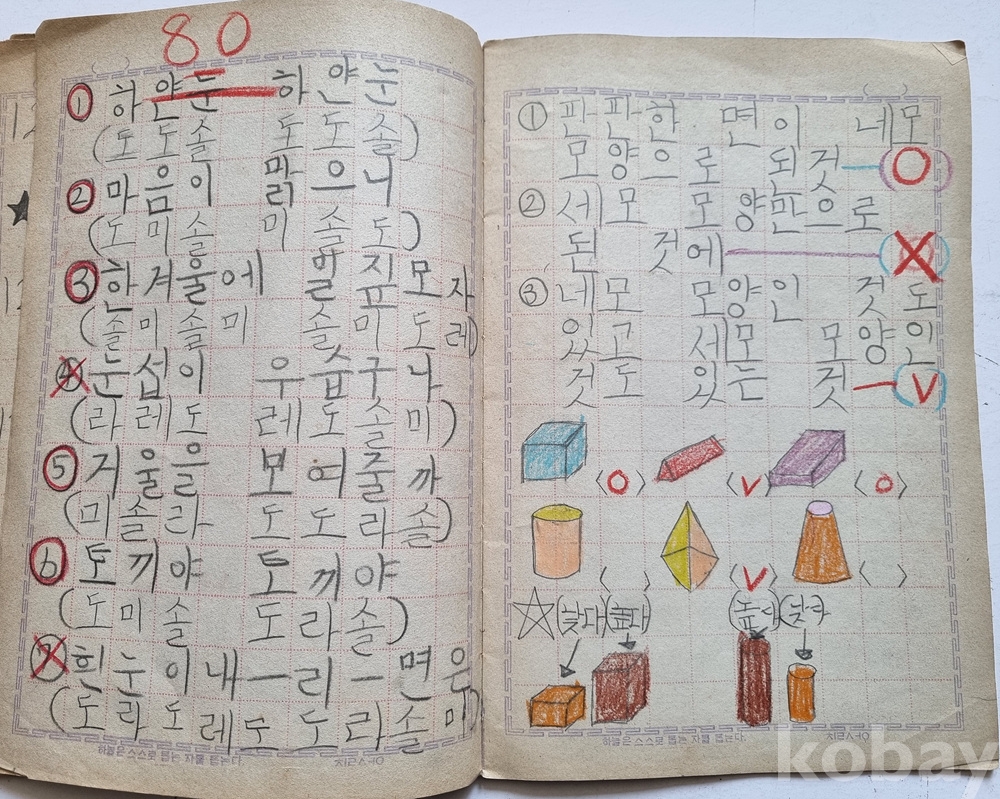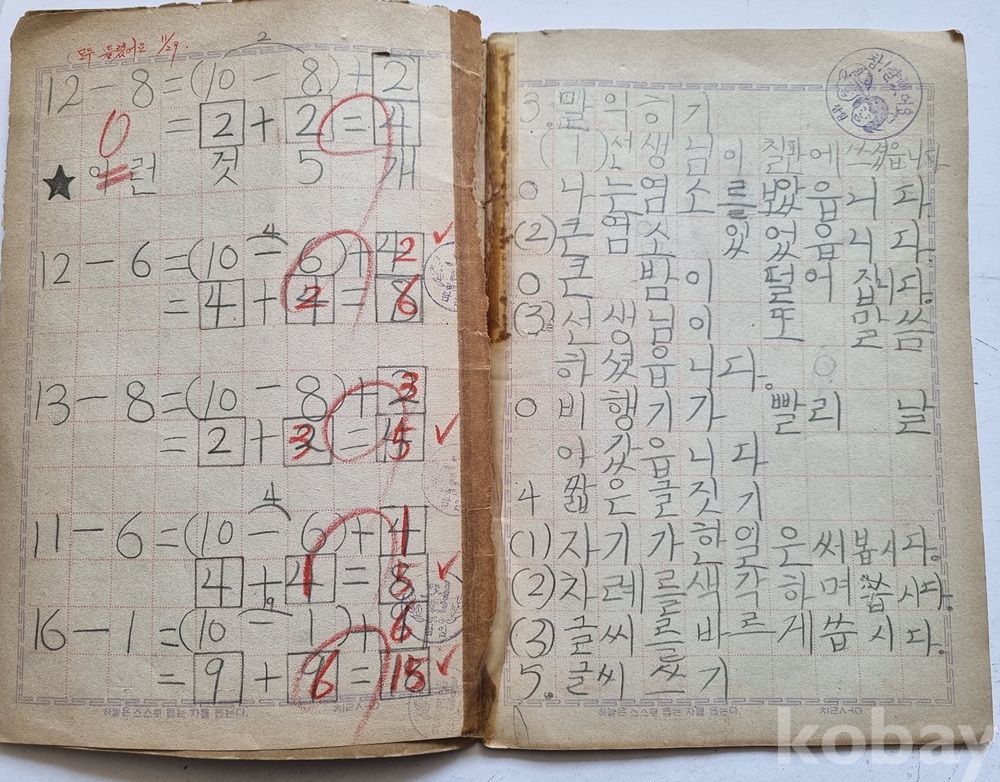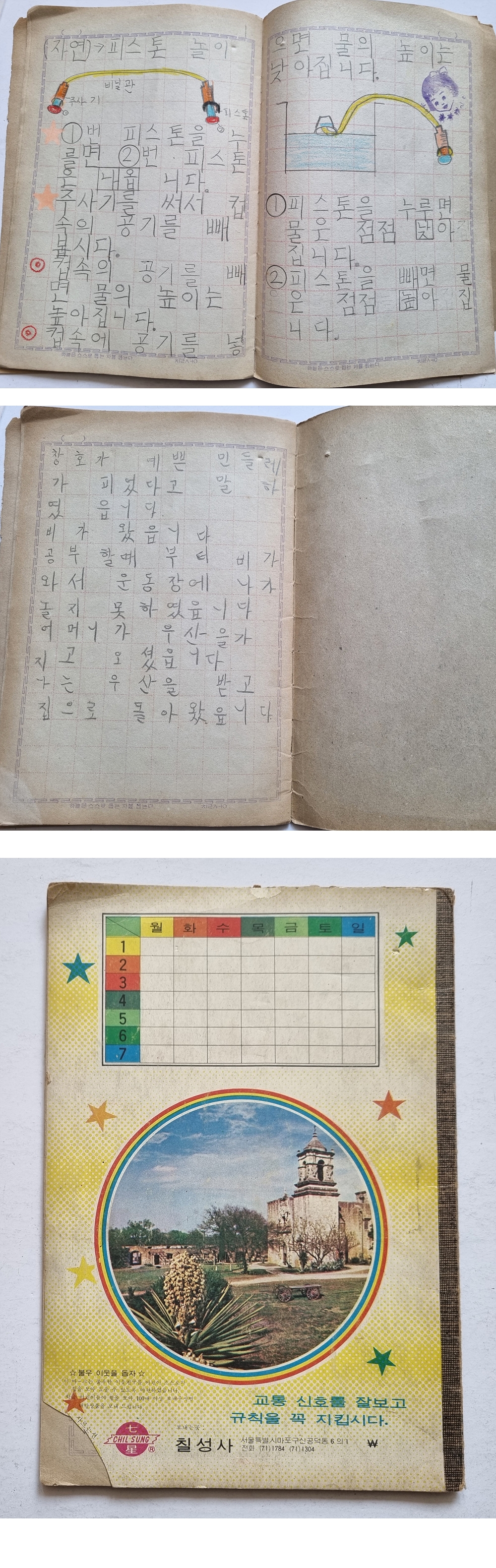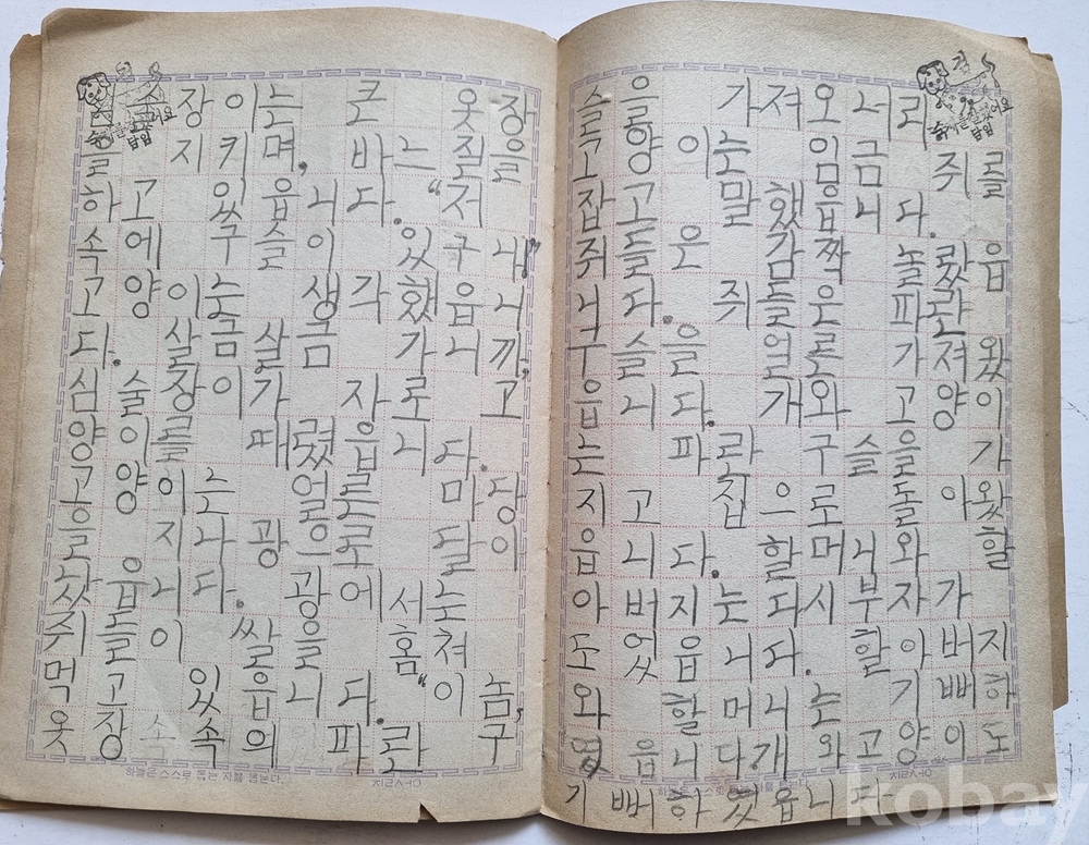 빈 공책이 아니라, 당시 어린이가 직접 손글씨로 쓴 **'생활 밀착형 기록물'**로서 꽉 차있습니다.