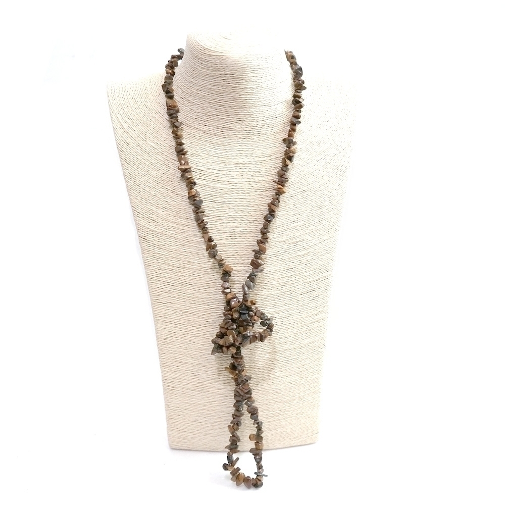 호안석으로 만들어진 둘레가 매우 길다란 롱 목걸이 입니다.