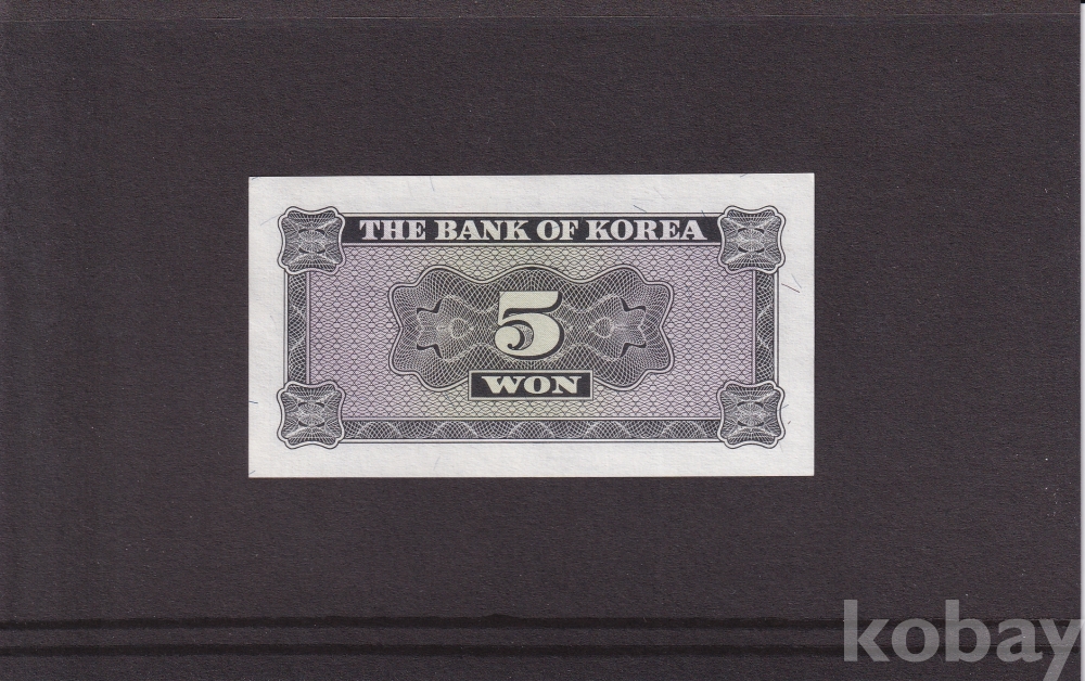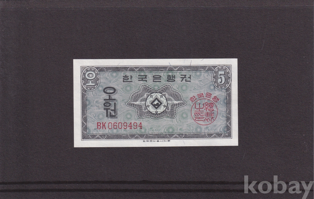 - 한국은행 1962년 영제 오원 BK기호 미사용 지폐