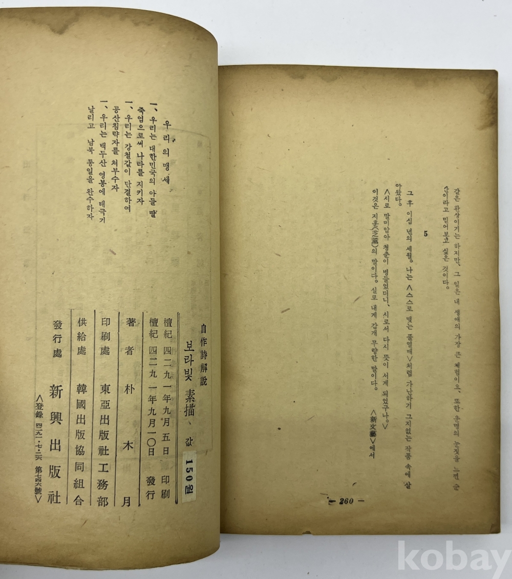 물 품 명 | <신춘문예(新春文藝)> 1958년 신흥출판사(新興出版社) 발행 박목월(朴木月) 자작시 해설집 [보라빛 소묘] 1책 | |||||