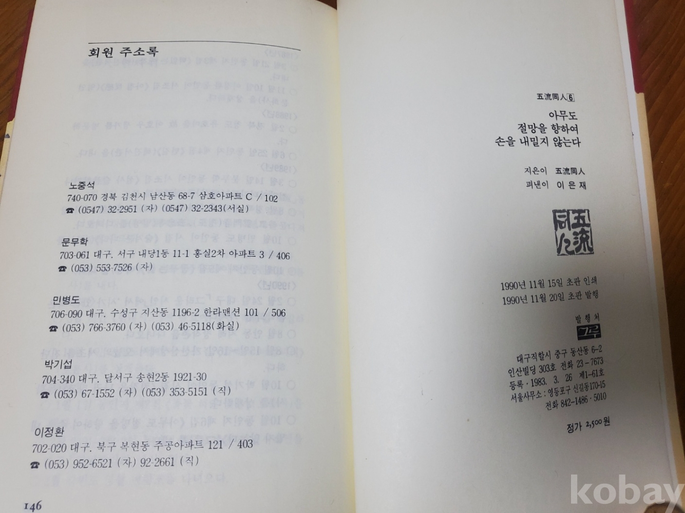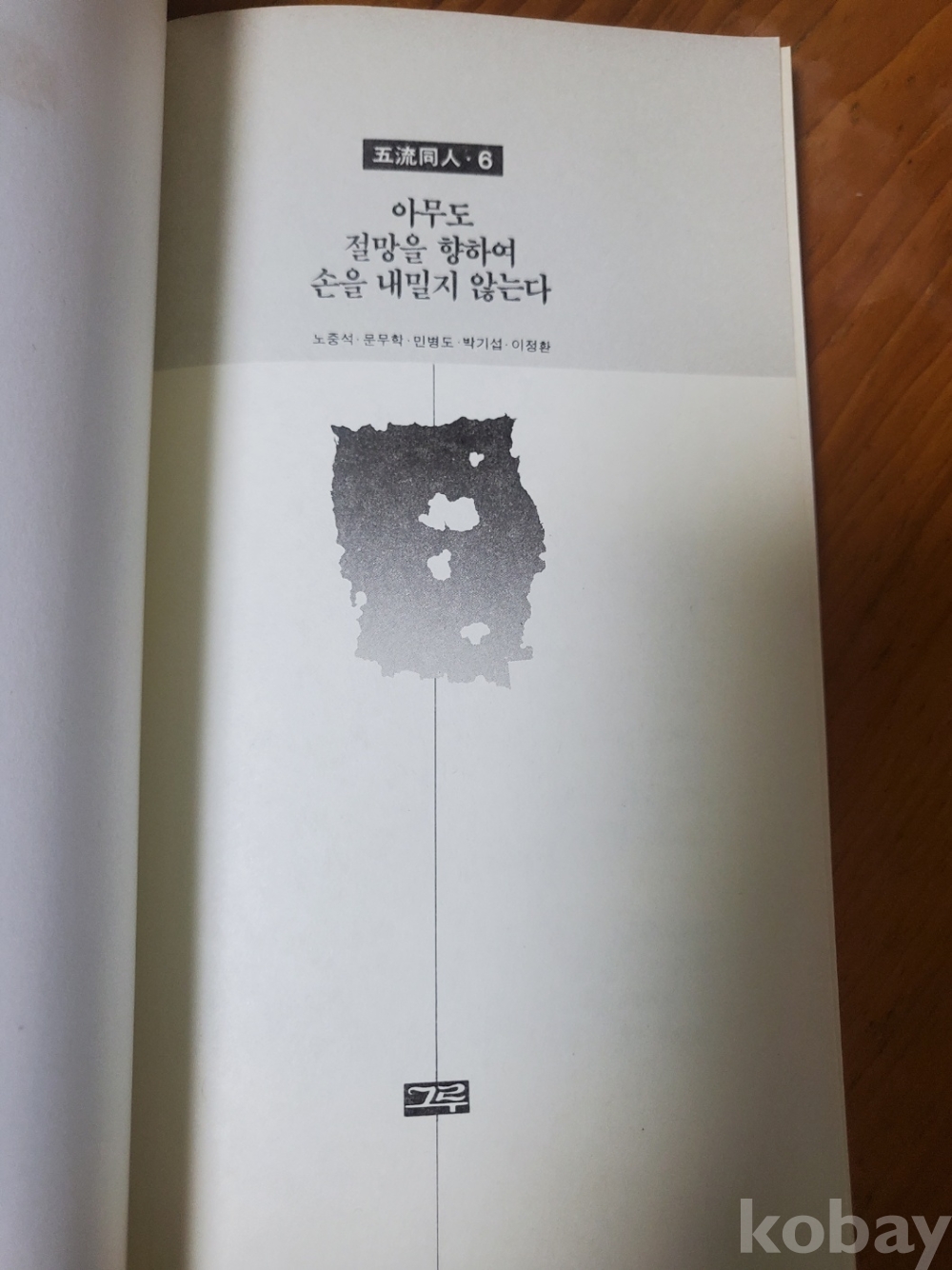 1. 아무도 절망을 향하여 손을 내밀지 않는다, 오류동인6, 도서출판 그루, 1990년, 146쪽, 상태 상, 사진 참조