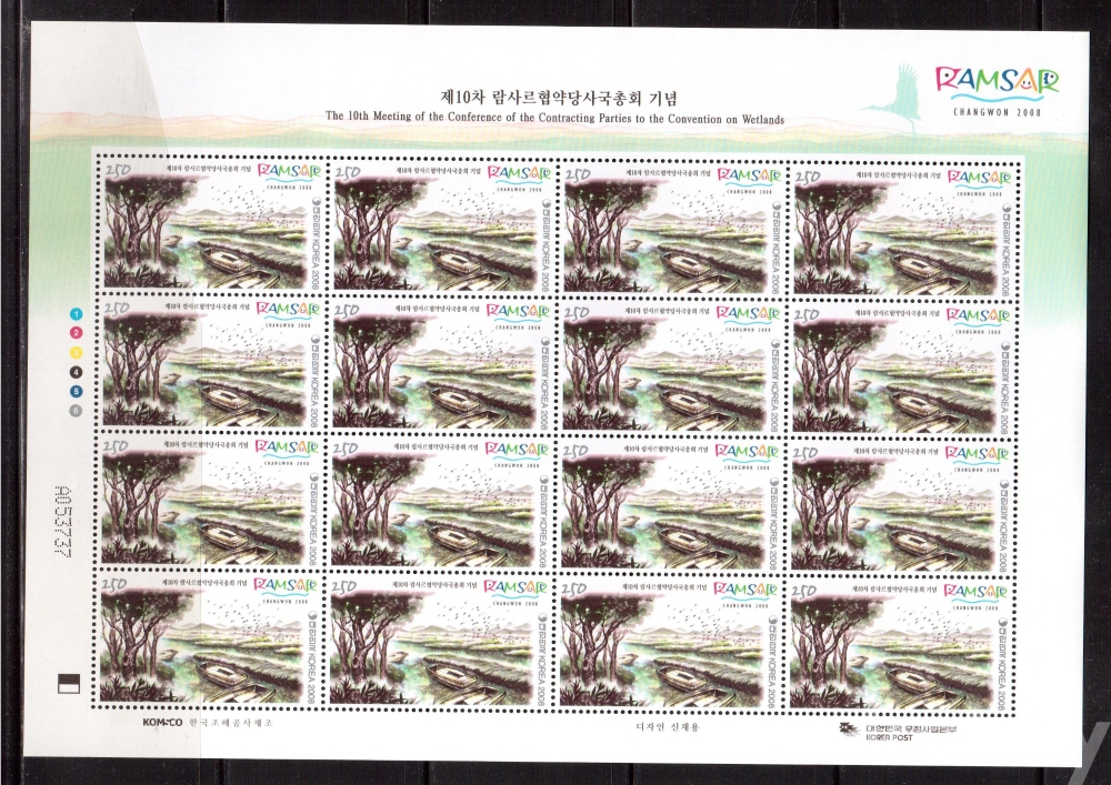 (한국전지) 2008.10.28 제10차 람사르협약당사국 총회 sheet of 16 MNH