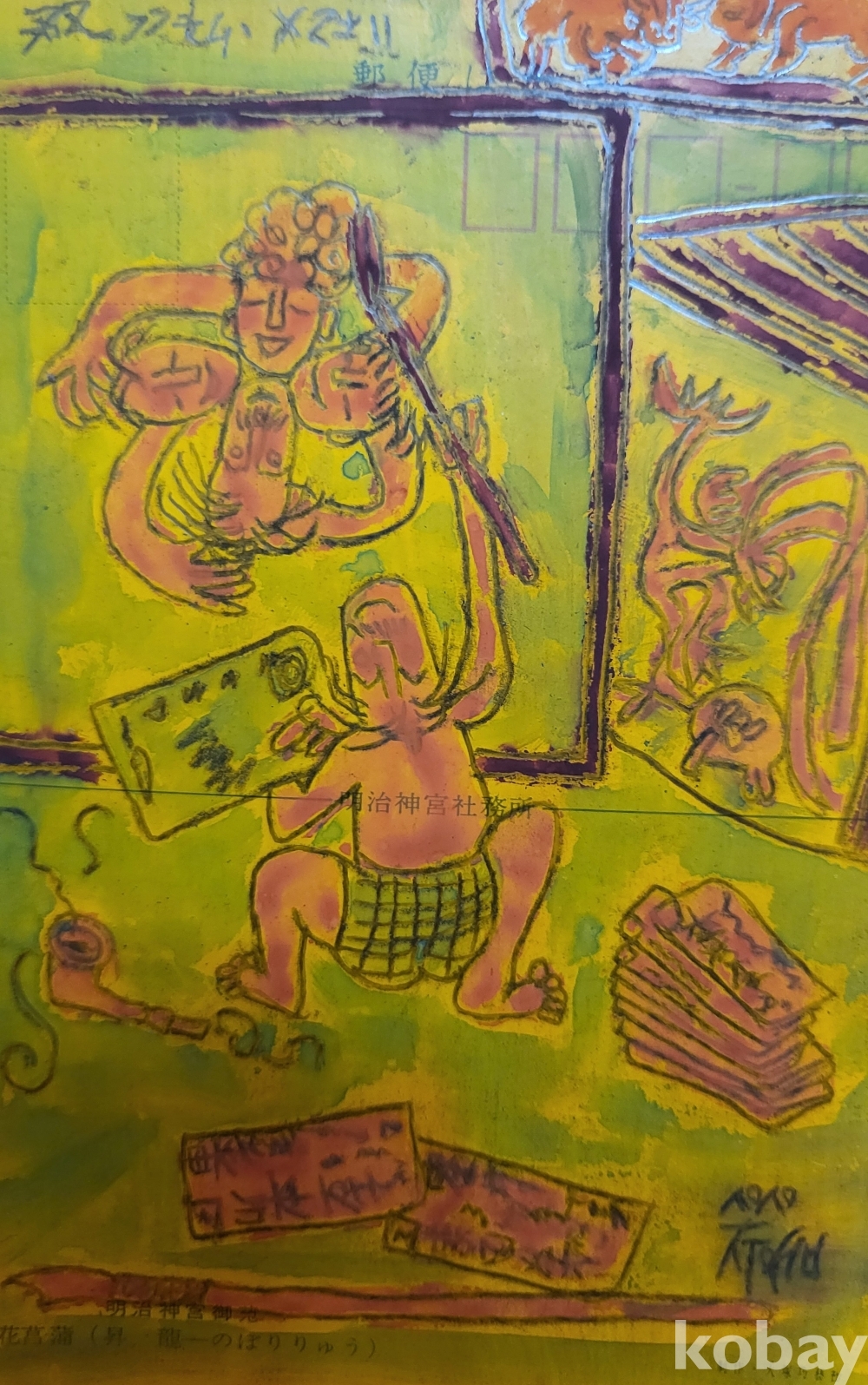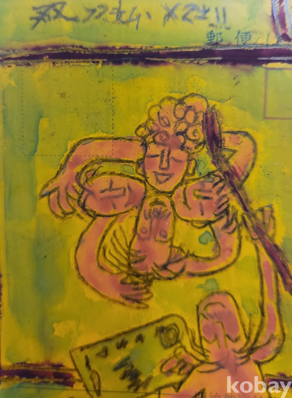 우편엽서에 그린 중섭 사인이 보이는 여인을 화폭에 그리는 그림입니다,