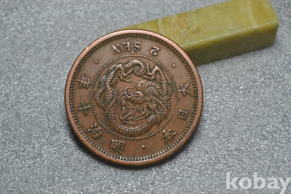 ㅡ> 100년 넘는 오래된 명치10년도(1877년도) 일본 대형 용 2전청동화 입니다.