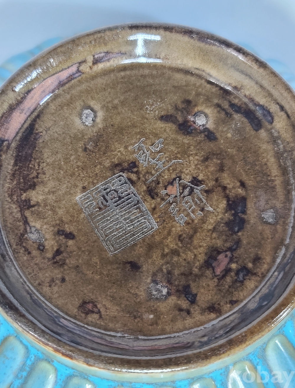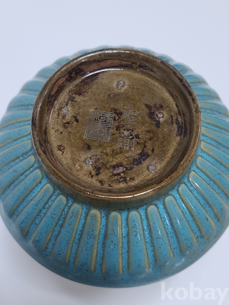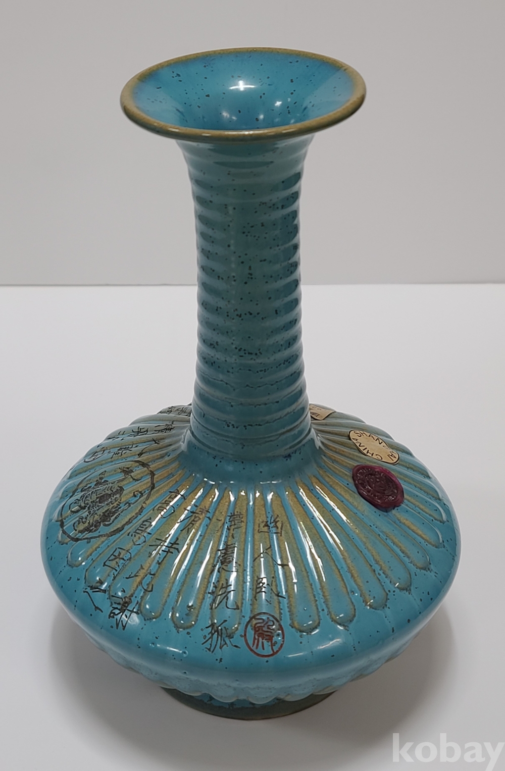 휘종황제의 시문과 그림이(현무) 그려진 기형이 독특한 청천유 여요 화병입니다.