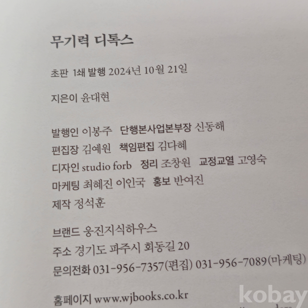 (천원경매) (((서적))) 무기력 디톡스 - 당신은 무기력에서 벗어날수 있다 (2024년 초판 1쇄)