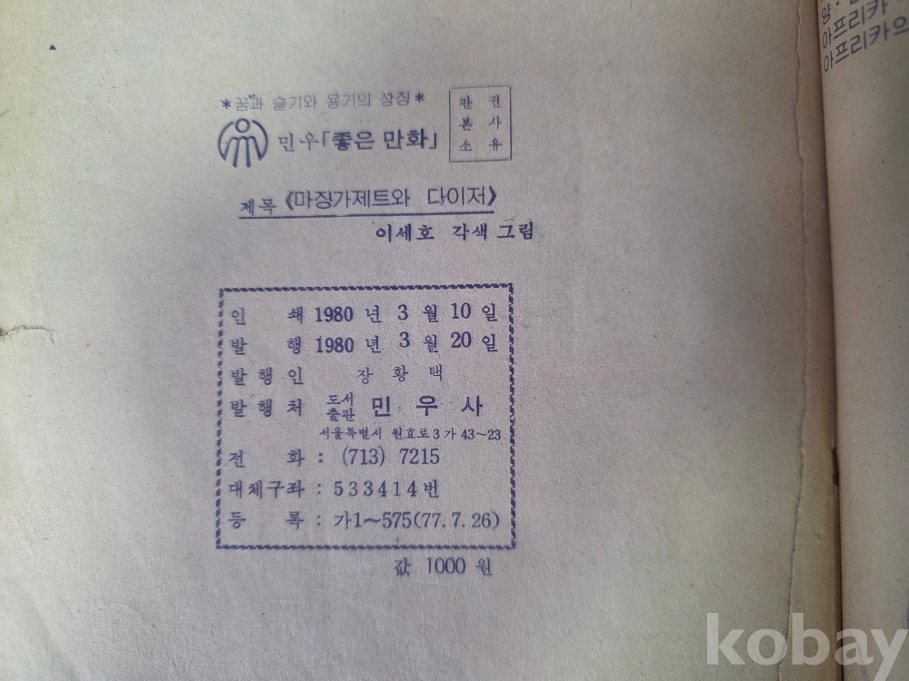 출판사 | 도서출판 민우사 | 상태 | 첫 페이지 낙장, 3p 상단 찢김, 69p 찢어짐, 내지 분리, 마지막 페이지 낙서, 상세 상태 사진 참고 |