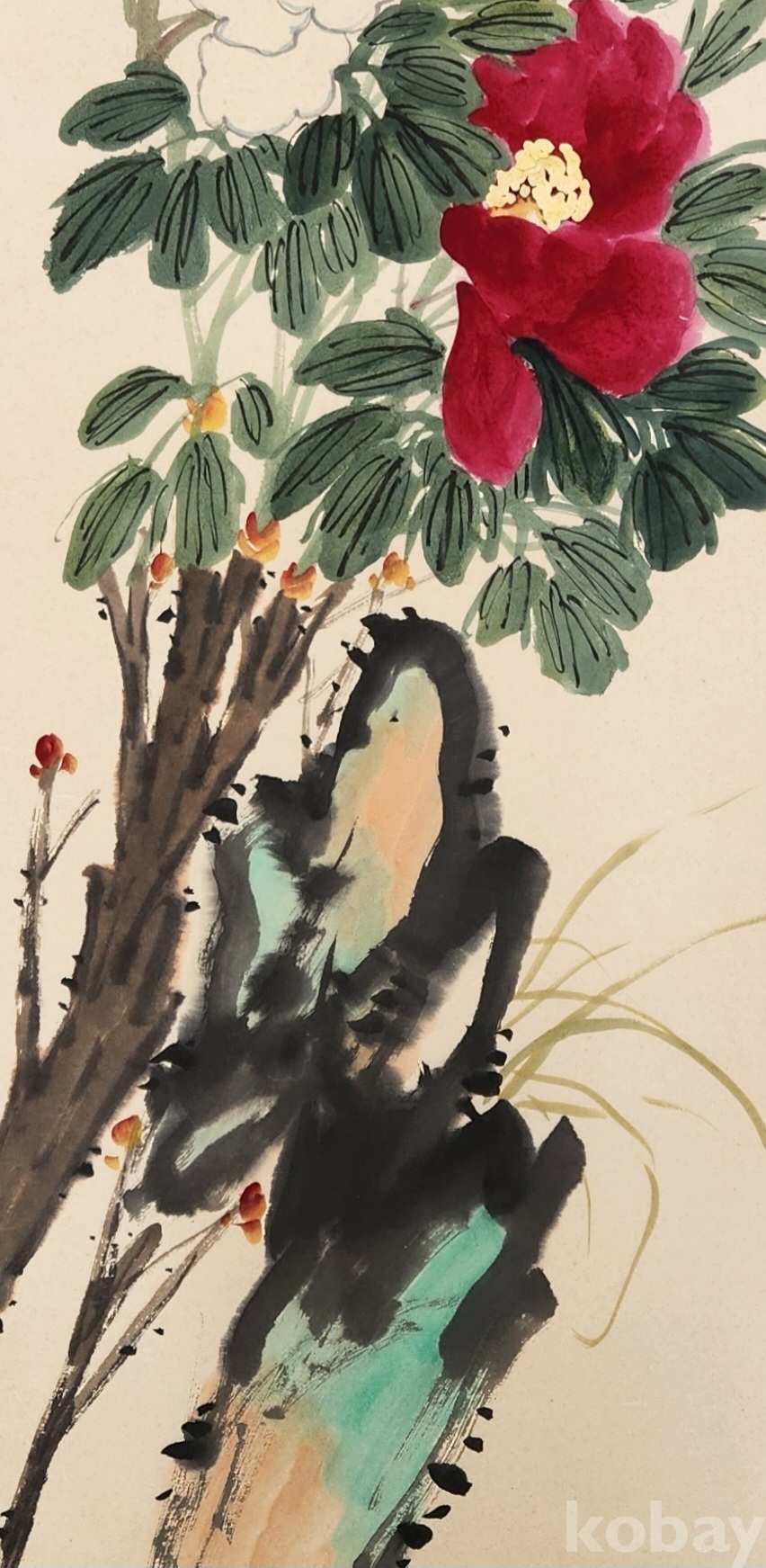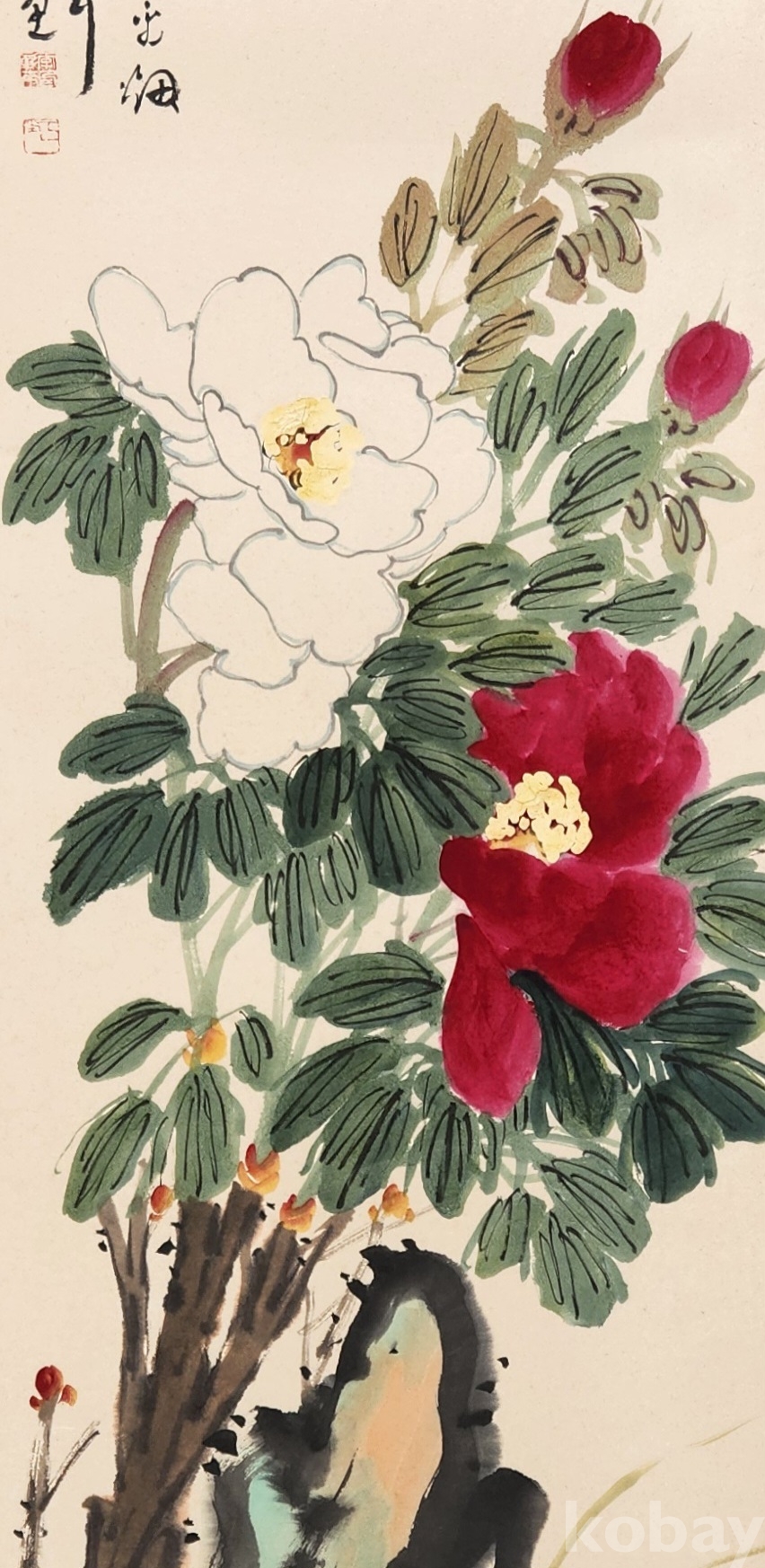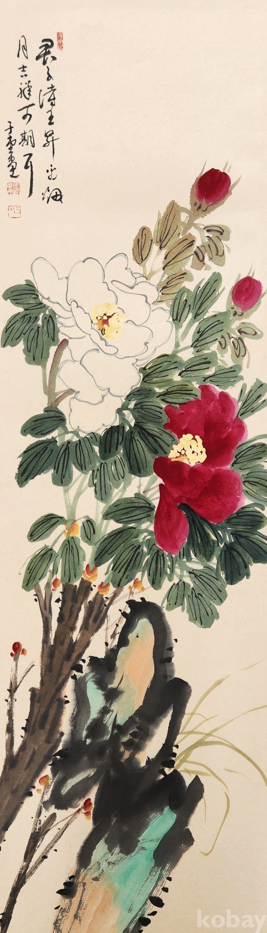 이당 사사 유명 한국화가 우당 이창래<괴석에목단>2절20호