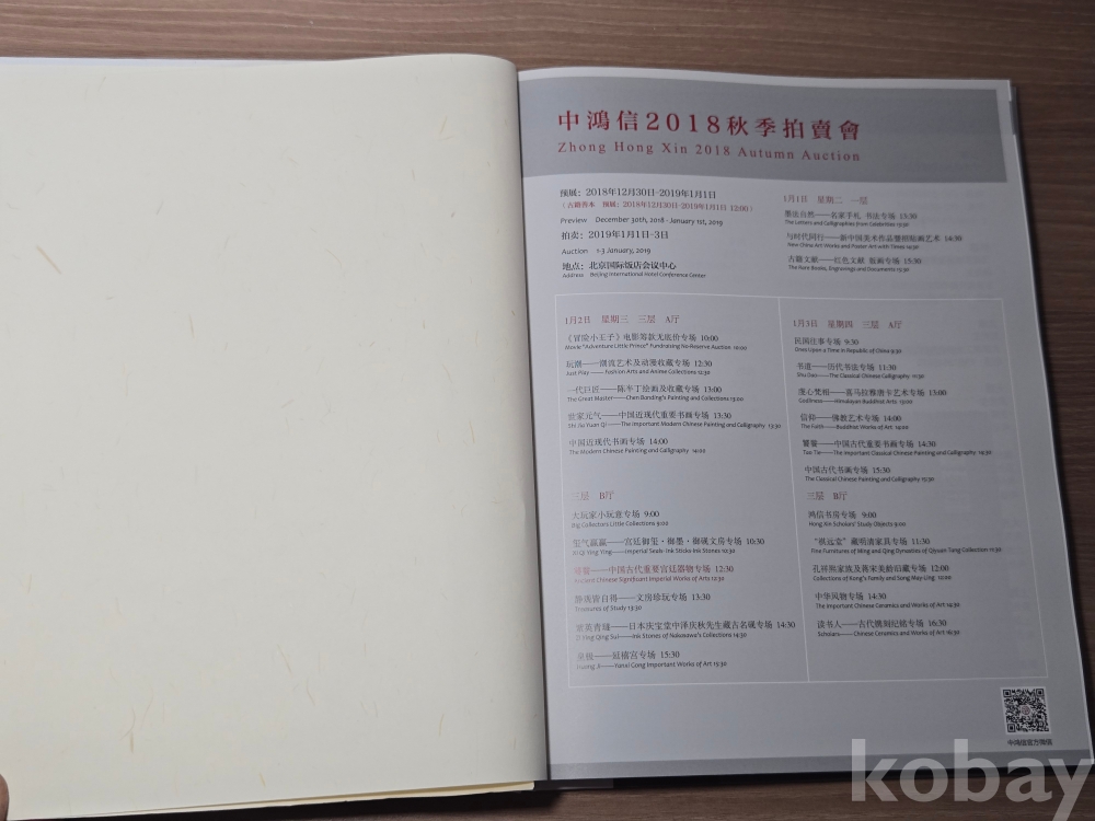 <투킴스> 중국경매도록- 2018년 중홍신(Zhong Hong Xin) 가을 경매도록- 궁정기물
