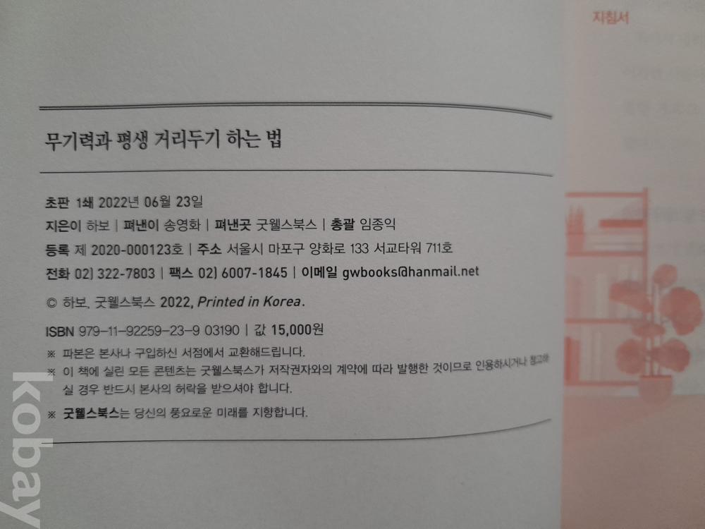 [ 무기력과 평생 거리두기 하는법 ] 멘탈 관리 지침서 / 하보 지음