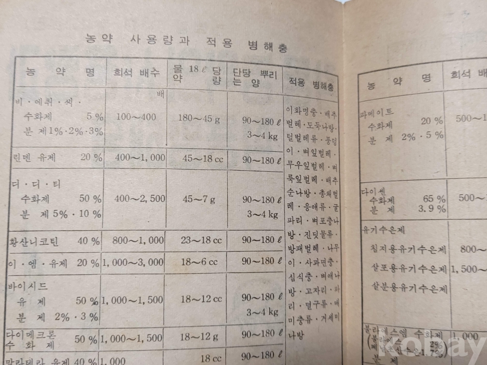< 각종 농약의 사용량과 적굥병해충 (제8호 개정판 ) 1장>
