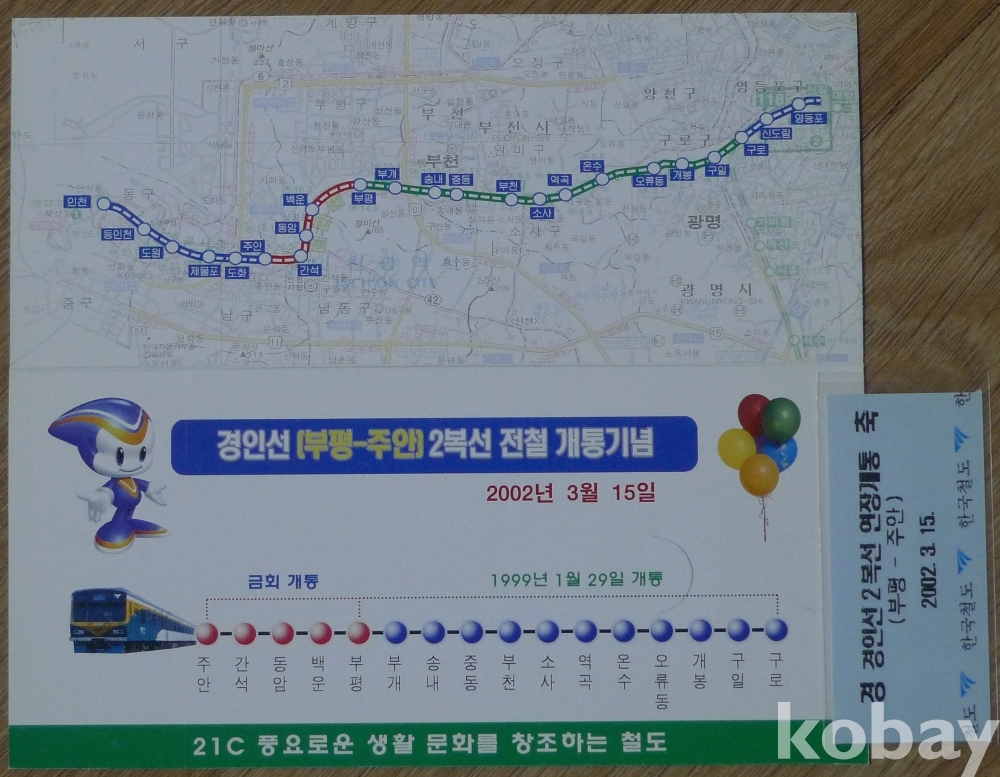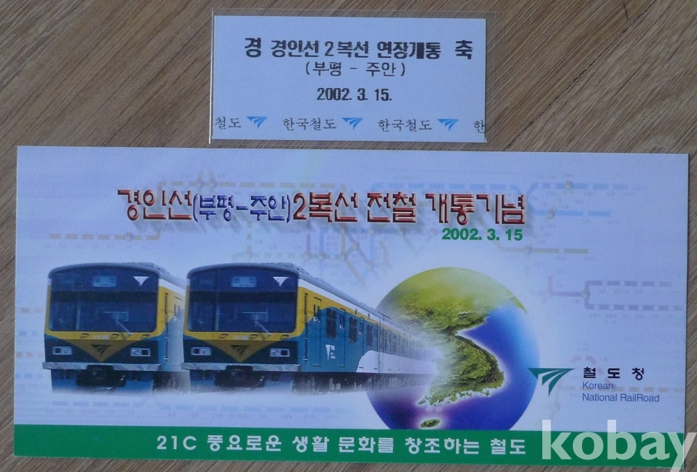 2002년 경인선(주안 - 부평) 2복선 개통 기념 승차권