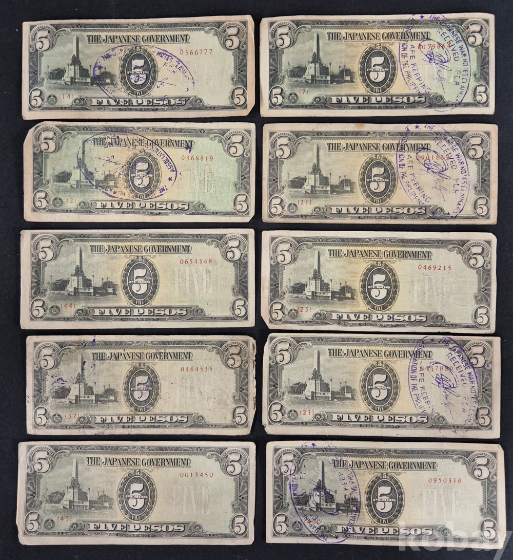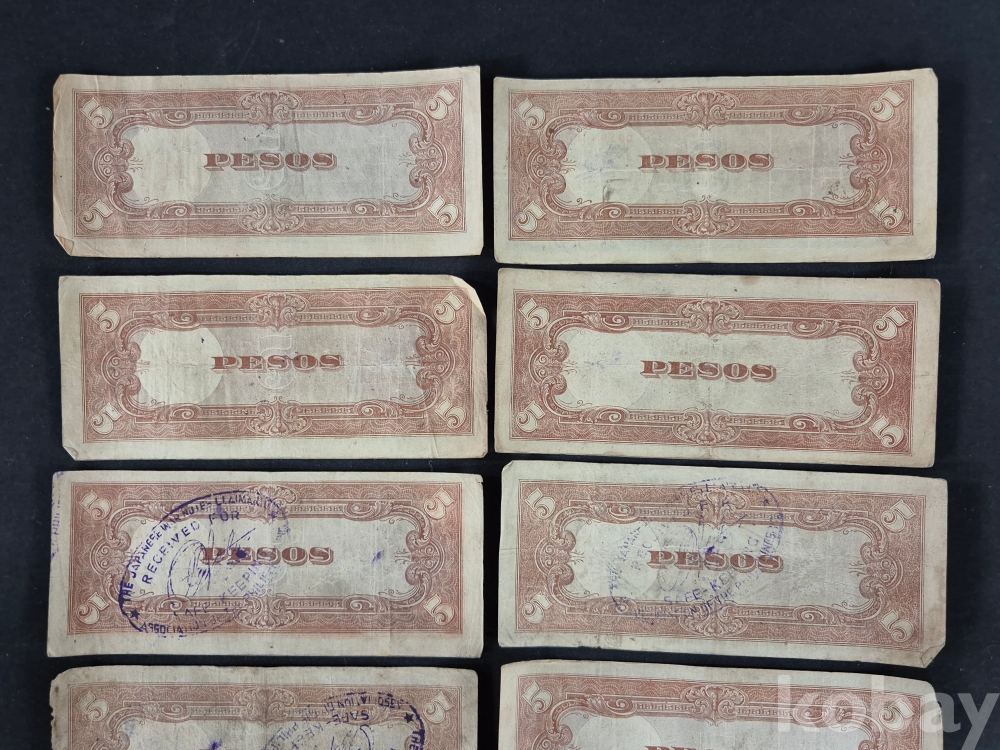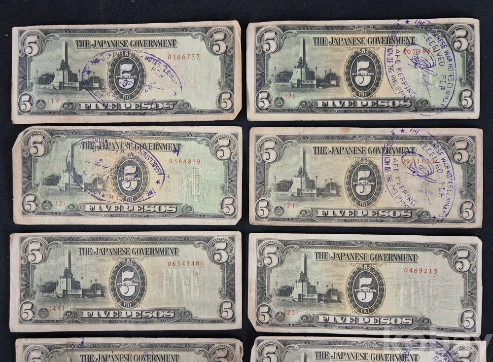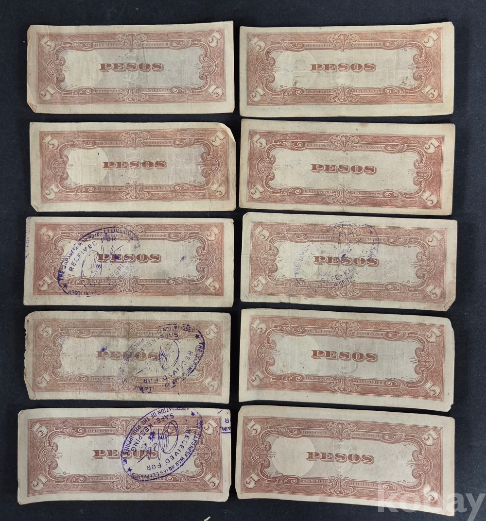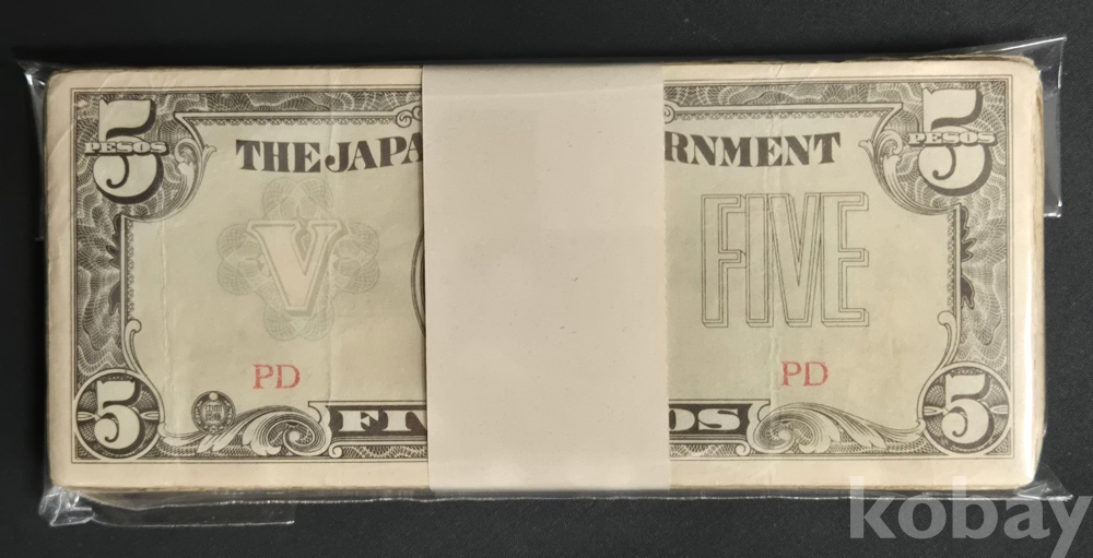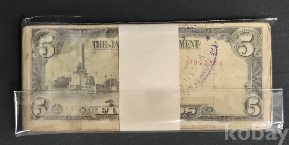 - 태평양 전쟁 일본 군표 5페소 필리핀 사용 약 100장 다발- 군용 수표