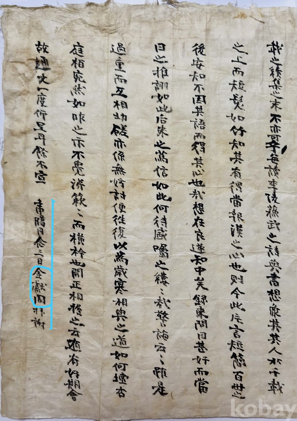 ◈ 임신년(1932) 12월 23일에 김헌주(金獻周)가 쓴 간찰.