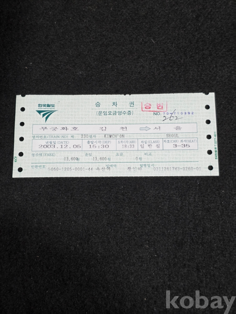 (((철도자료/지하철자료))) 2003년 한국철도 승차권 (무궁화호) (김천-서울) (승변)
